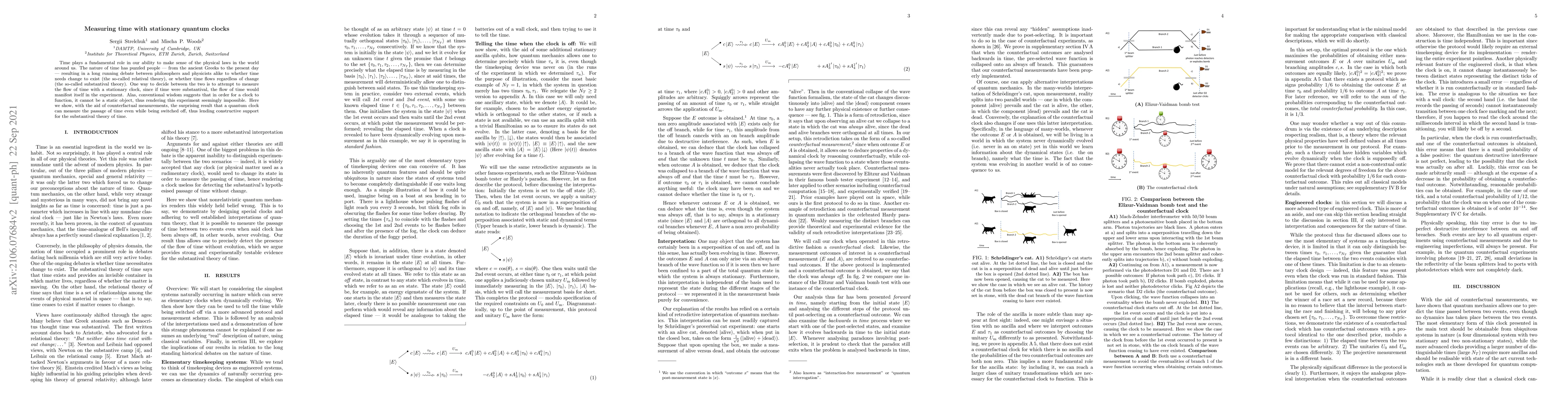 Time plays a fundamental role in our ability to make sense of the physical laws in the world around us. The nature of time has puzzled people -- from the ancient Greeks to the present day -- resulting in a long running debate between philosophers and physicists alike to whether time needs change to exist (the so-called relatival theory), or whether time flows regardless of change (the so-called substantival theory). One way to decide between the two is to attempt to measure the flow of time with a stationary clock, since if time were substantival, the flow of time would manifest itself in the experiment. Alas, conventional wisdom suggests that in order for a clock to function, it cannot be a static object, thus rendering this experiment seemingly impossible. Here we show, with the aid of counterfactual measurements, the surprising result that a quantum clock can measure the passage of time even while being switched off, thus lending constructive support for the substantival theory of time.
