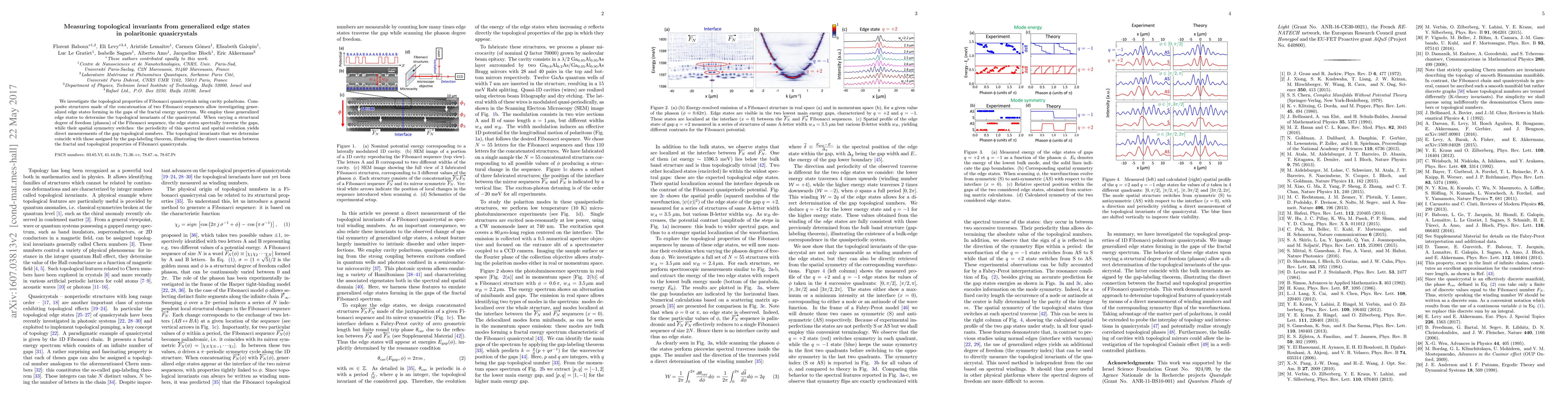 This paper investigates the topological properties of Fibonacci quasicrystals using cavity polaritons, revealing generalized edge states that allow for the determination of topological invariants. By varying a structural degree of freedom, the edge states' spectral and spatial evolution directly measures the topological invariants, aligning with the gap-labeling theorem.