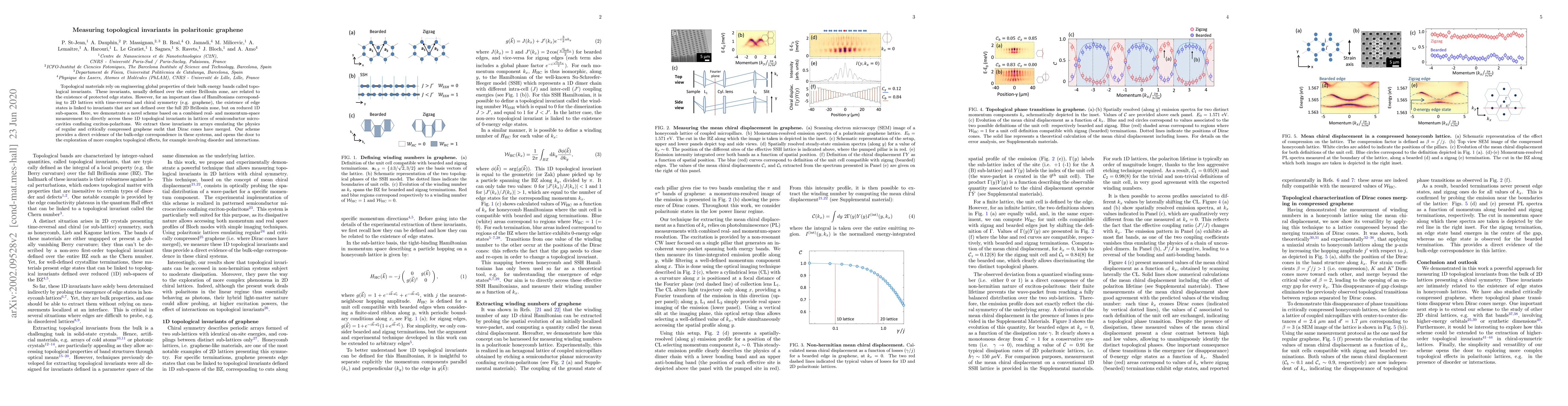 This paper presents a novel method to measure topological invariants in polaritonic graphene by combining real- and momentum-space measurements, demonstrating the bulk-edge correspondence in systems with merged Dirac cones and paving the way for studying complex topological effects.
