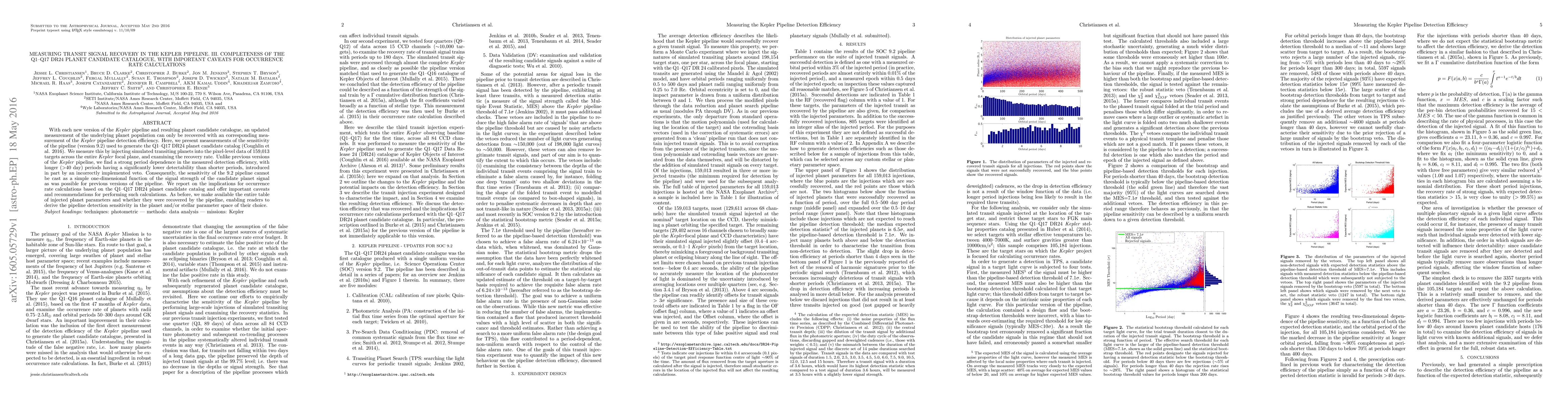 This paper measures the sensitivity of the Kepler pipeline version 9.2 used to generate the Q1-Q17 DR24 planet candidate catalog, revealing a strong period dependence in detection efficiency. It highlights significant caveats for calculating occurrence rates due to lower detectability of longer-period planets.