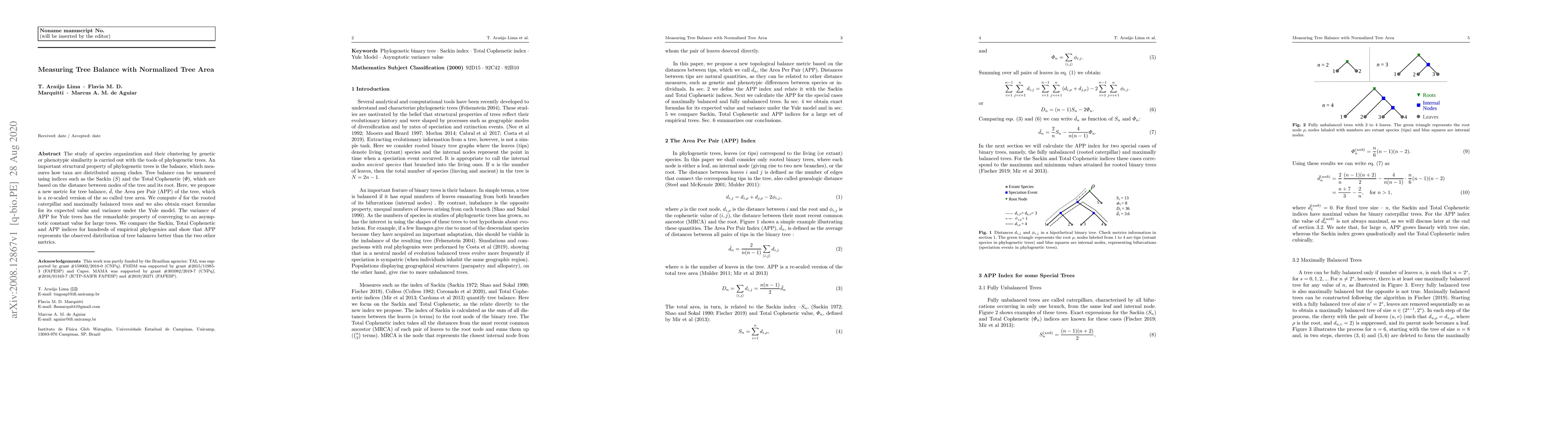 The research proposes a new metric, Area Per Pair (APP), for measuring tree balance in phylogenetic trees, derived from the normalized tree area. It provides exact formulas for APP for fully balanced and maximally balanced trees and calculates the expected value and variance under the Yule model.