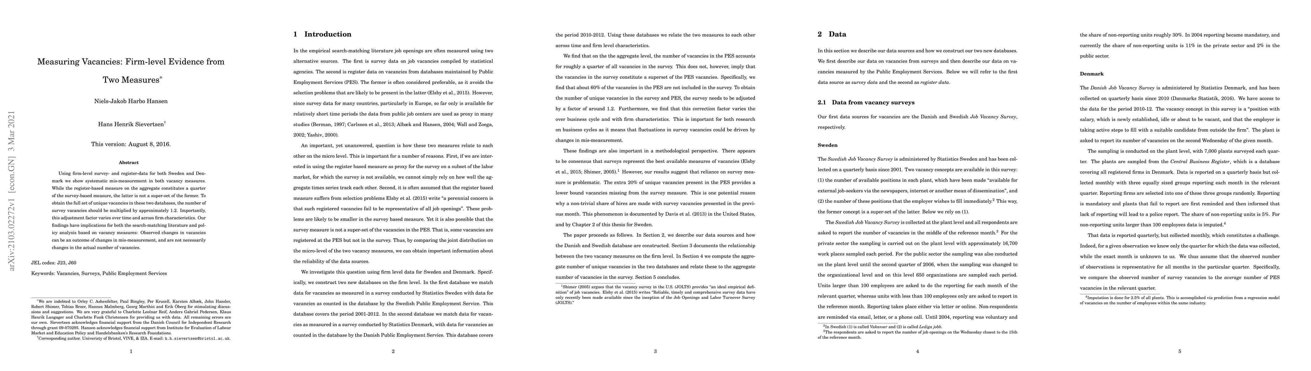 Using firm-level survey- and register-data for both Sweden and Denmark we show systematic mis-measurement in both vacancy measures. While the register-based measure on the aggregate constitutes a quarter of the survey-based measure, the latter is not a super-set of the former. To obtain the full set of unique vacancies in these two databases, the number of survey vacancies should be multiplied by approximately 1.2. Importantly, this adjustment factor varies over time and across firm characteristics. Our findings have implications for both the search-matching literature and policy analysis based on vacancy measures: Observed changes in vacancies can be an outcome of changes in mis-measurement, and are not necessarily changes in the actual number of vacancies.