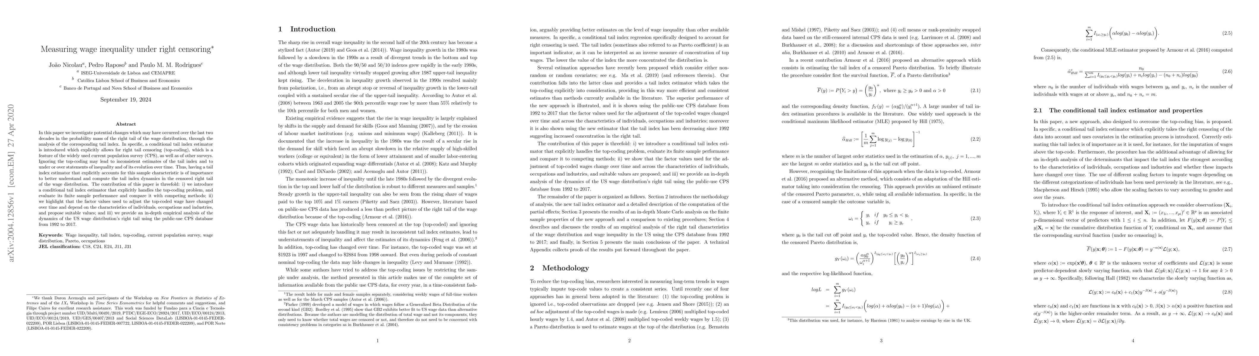This paper introduces a new estimator to analyze changes in the wage distribution's right tail, accounting for right censoring or 'top-coding' in surveys like the CPS. It also reveals that adjustment factors for top-coded wages have varied over time and by individual, occupation, and industry characteristics, and provides an in-depth analysis of US wage inequality dynamics from 1992 to 2017 using CPS data.