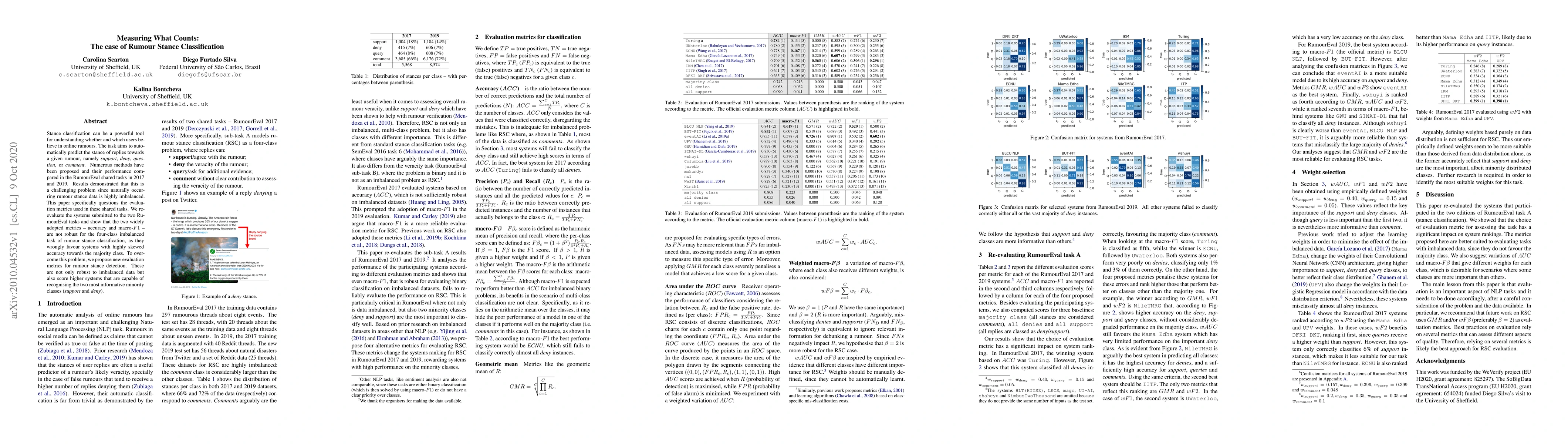 This paper critiques the evaluation metrics used in RumourEval shared tasks for stance classification, arguing that accuracy and macro-F1 are inadequate for imbalanced data. It proposes new metrics that better reflect performance on minority classes, enhancing the robustness of evaluation in rumour stance detection.