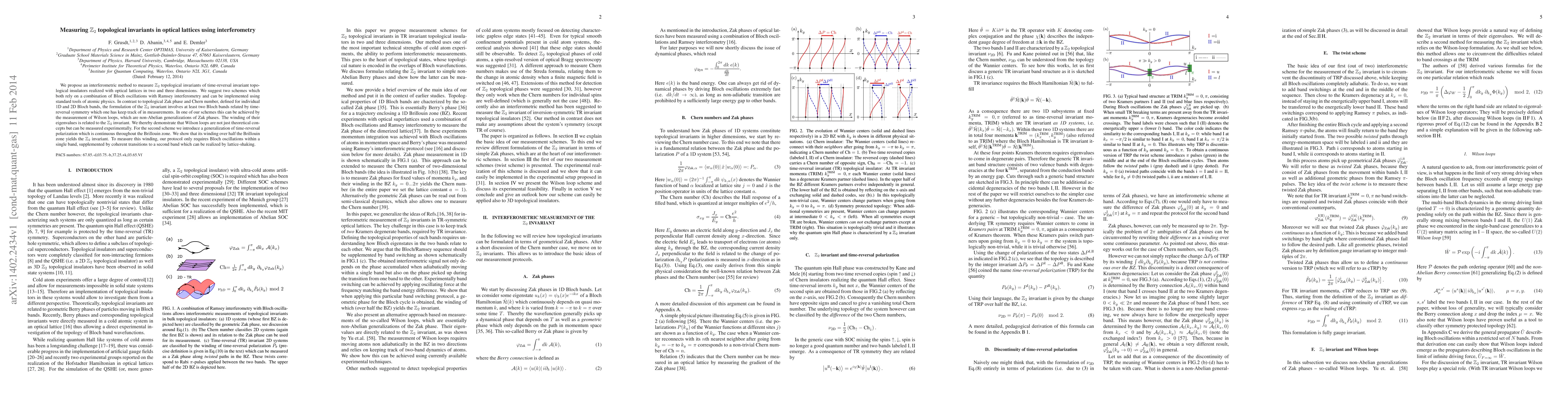 This paper proposes interferometric methods to measure Z2 topological invariants in optical lattices, using Bloch oscillations and Ramsey interferometry. It introduces two schemes: one based on measuring Wilson loops and the other on a generalized time-reversal polarization, demonstrating experimental feasibility of these topological concepts.