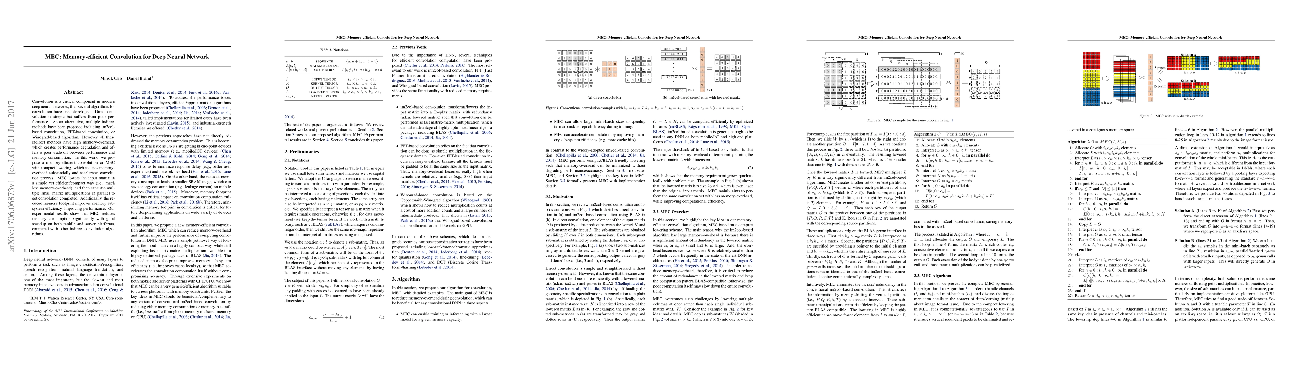 This paper proposes a memory-efficient convolution (MEC) method that significantly reduces memory overhead and improves performance by lowering the input matrix and executing parallel small matrix multiplications. Experimental results show substantial memory reduction and speedup compared to other indirect convolution methods.