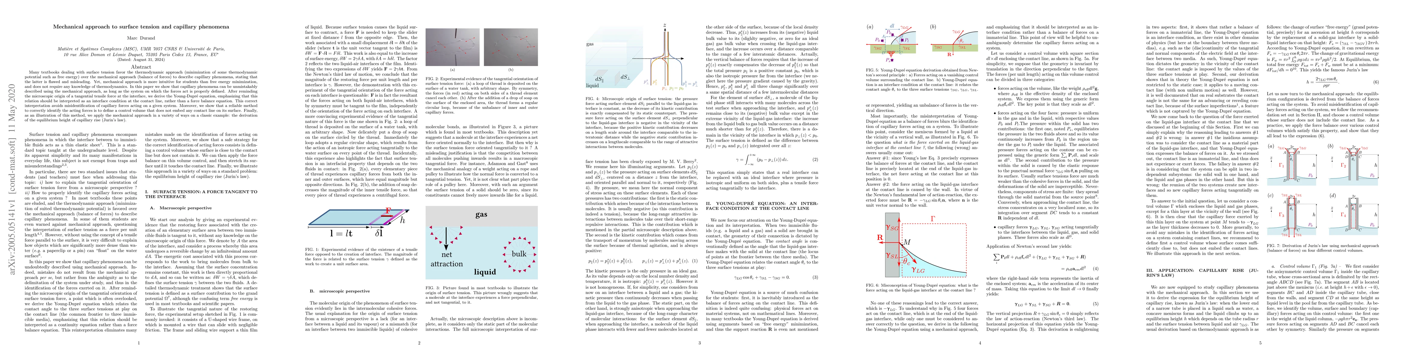 A new approach to understanding surface tension and capillary phenomena is presented, showing that mechanical forces can accurately describe these effects without relying on thermodynamics or incorrect assumptions about interface conditions.