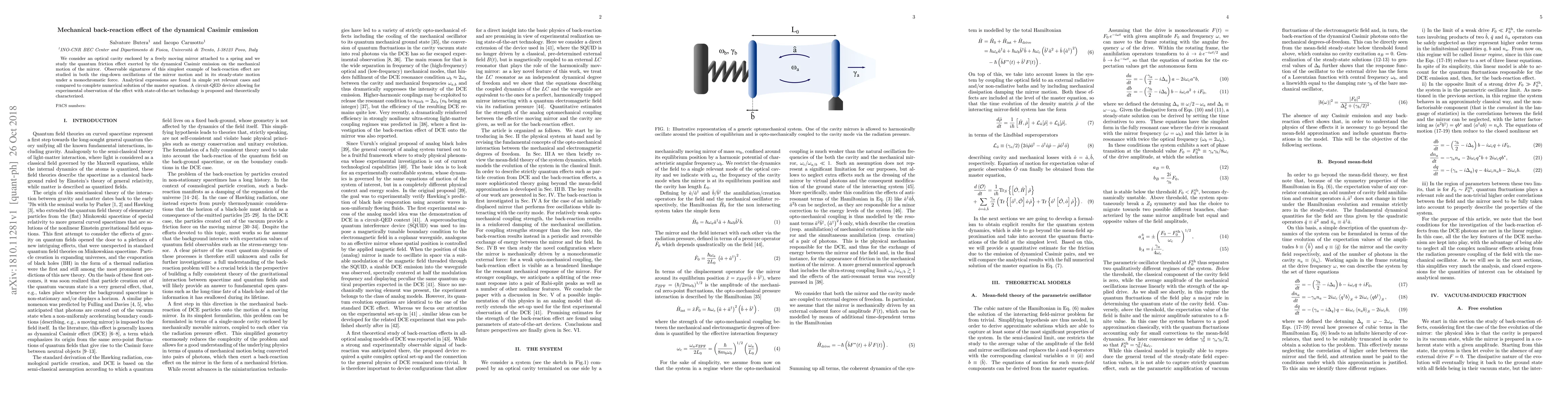 Researchers studied how the emission of quantum radiation affects a mirror's motion in an optical cavity, finding observable signatures of this phenomenon in ring-down oscillations and steady-state motion.