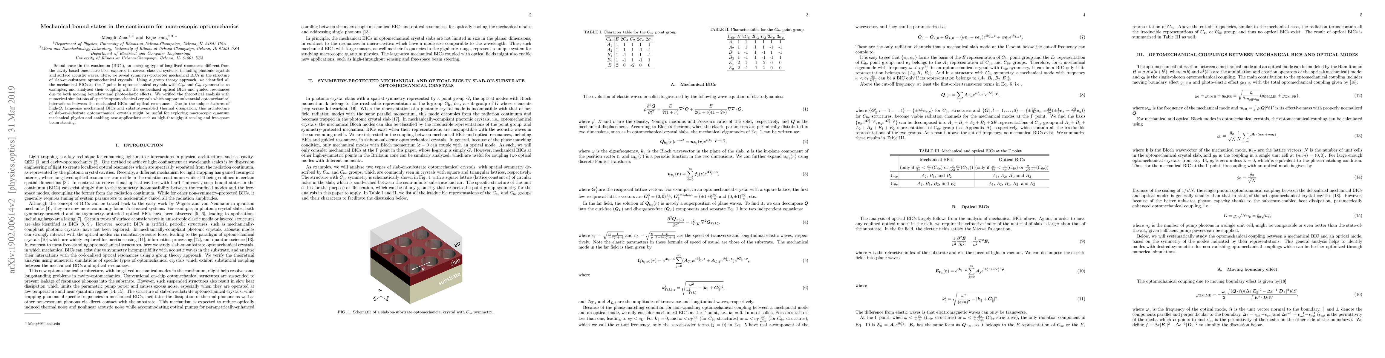 This paper explores symmetry-protected mechanical bound states in the continuum (BICs) in slab-on-substrate optomechanical crystals, demonstrating their coupling with optical BICs and guided resonances. The study suggests potential applications in macroscopic quantum mechanics, high-throughput sensing, and free-space beam steering.