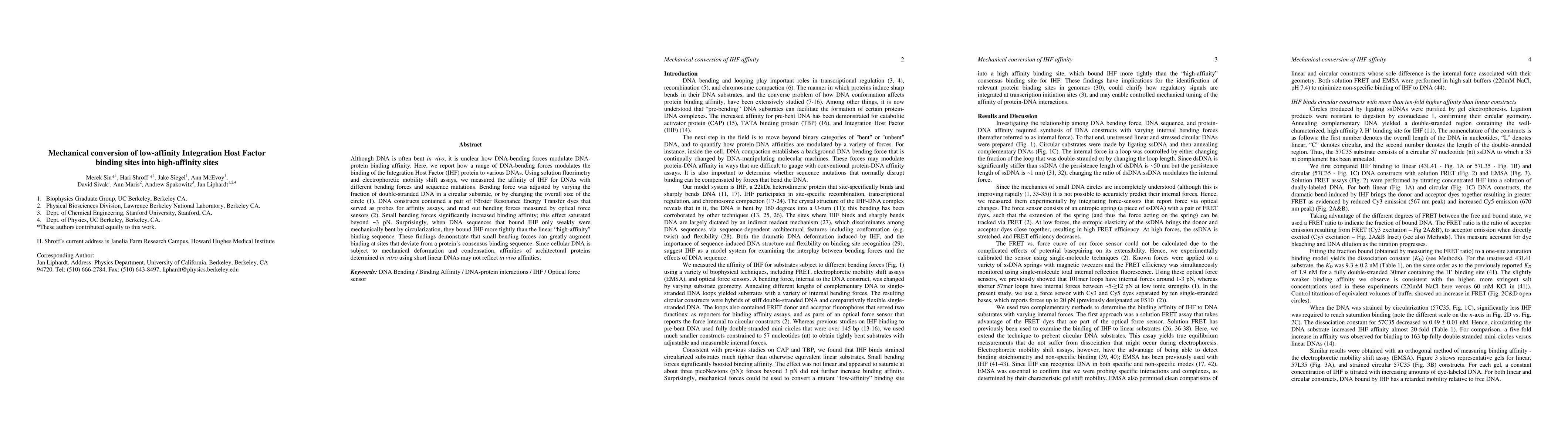 This study investigates how DNA-bending forces modulate the binding affinity of the Integration Host Factor (IHF) protein to DNA, revealing that small bending forces significantly enhance binding, especially at low-affinity sites, challenging the assumption that in vitro binding affinities accurately reflect in vivo conditions.