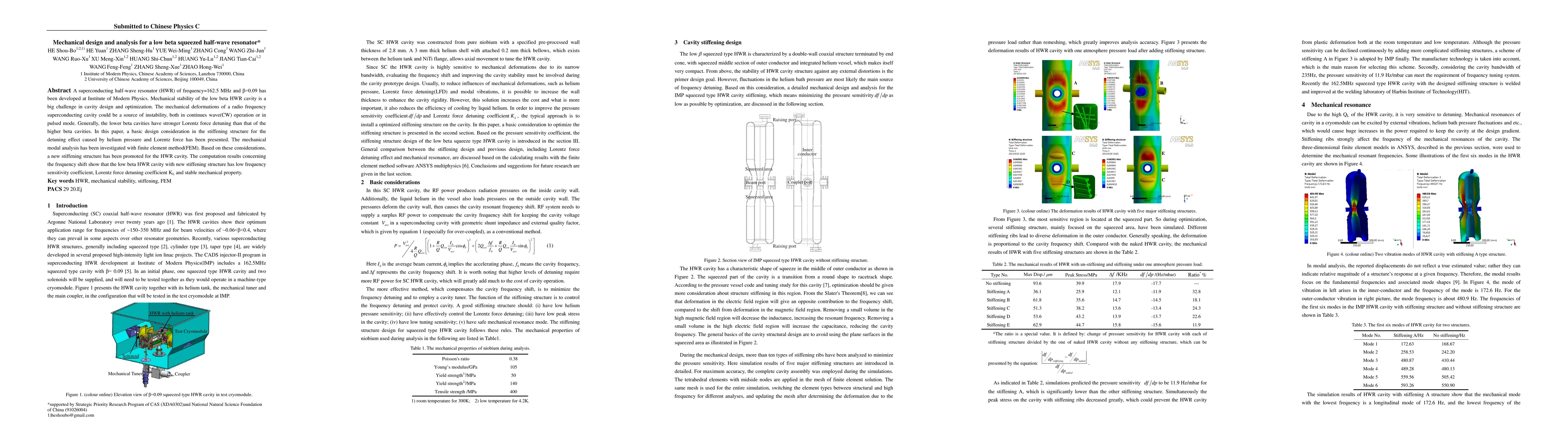 A superconducting half-wave resonator (HWR) of frequency=162.5 MHz and {\beta}=0.09 has been developed at Institute of Modern Physics. Mechanical stability of the low beta HWR cavity is a big challenge in cavity design and optimization. The mechanical deformations of a radio frequency superconducting cavity could be a source of instability, both in continues wave(CW) operation or in pulsed mode. Generally, the lower beta cavities have stronger Lorentz force detuning than that of the higher beta cavities. In this paper, a basic design consideration in the stiffening structure for the detuning effect caused by helium pressure and Lorentz force has been presented. The mechanical modal analysis has been investigated with finite element method(FEM). Based on these considerations, a new stiffening structure has been promoted for the HWR cavity. The computation results concerning the frequency shift show that the low beta HWR cavity with new stiffening structure has low frequency sensitivity coefficient, Lorentz force detuning coefficient KL and stable mechanical property.