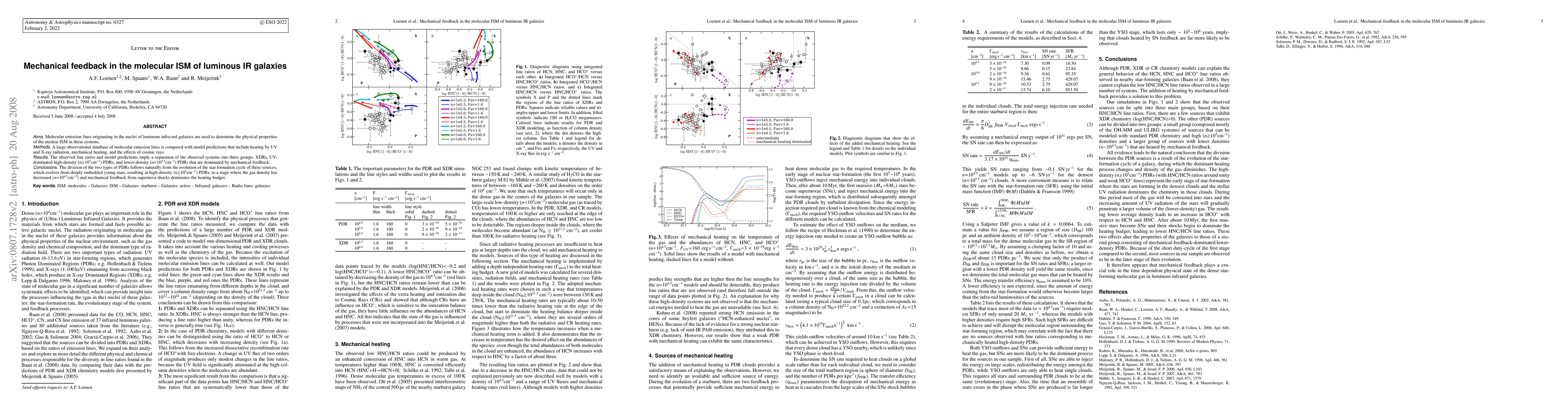 A study found that molecular gas in luminous IR galaxies can be divided into three groups based on their physical properties, with two types dominated by mechanical feedback from supernova shocks. The classification helps understand the evolution of star formation cycles in these galaxies.