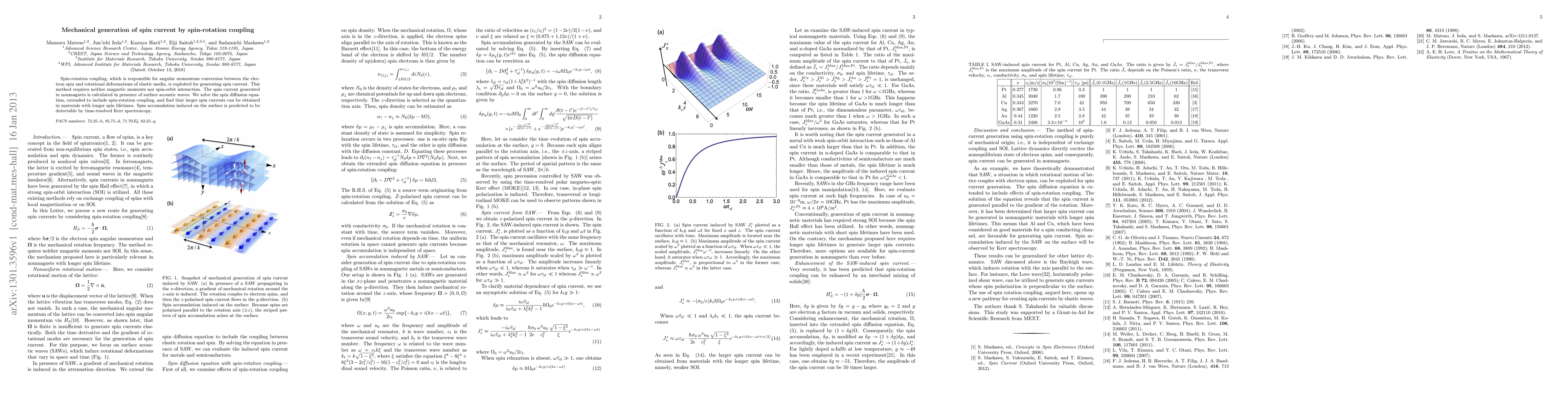 This paper explores the generation of spin current via spin-rotation coupling in elastic media without magnetic moments or spin-orbit interaction, demonstrating that larger spin currents can be achieved in materials with longer spin lifetimes. Time-resolved Kerr spectroscopy is proposed as a potential method for detecting spin accumulation induced on the surface.