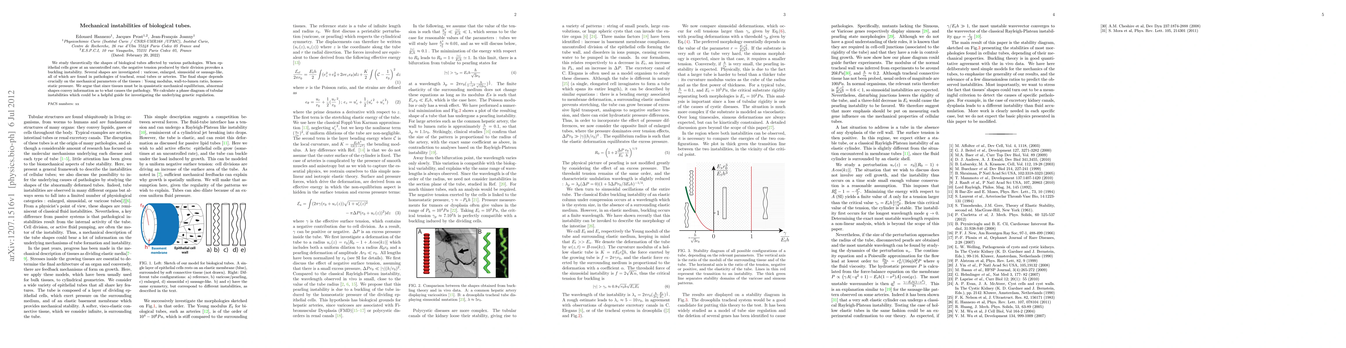 We study theoretically the shapes of biological tubes affected by various pathologies. When epithelial cells grow at an uncontrolled rate, the negative tension produced by their division provokes a buckling instability. Several shapes are investigated : varicose, enlarged, sinusoidal or sausage-like, all of which are found in pathologies of tracheal, renal tubes or arteries. The final shape depends crucially on the mechanical parameters of the tissues : Young modulus, wall-to-lumen ratio, homeostatic pressure. We argue that since tissues must be in quasistatic mechanical equilibrium, abnormal shapes convey information as to what causes the pathology. We calculate a phase diagram of tubular instabilities which could be a helpful guide for investigating the underlying genetic regulation.