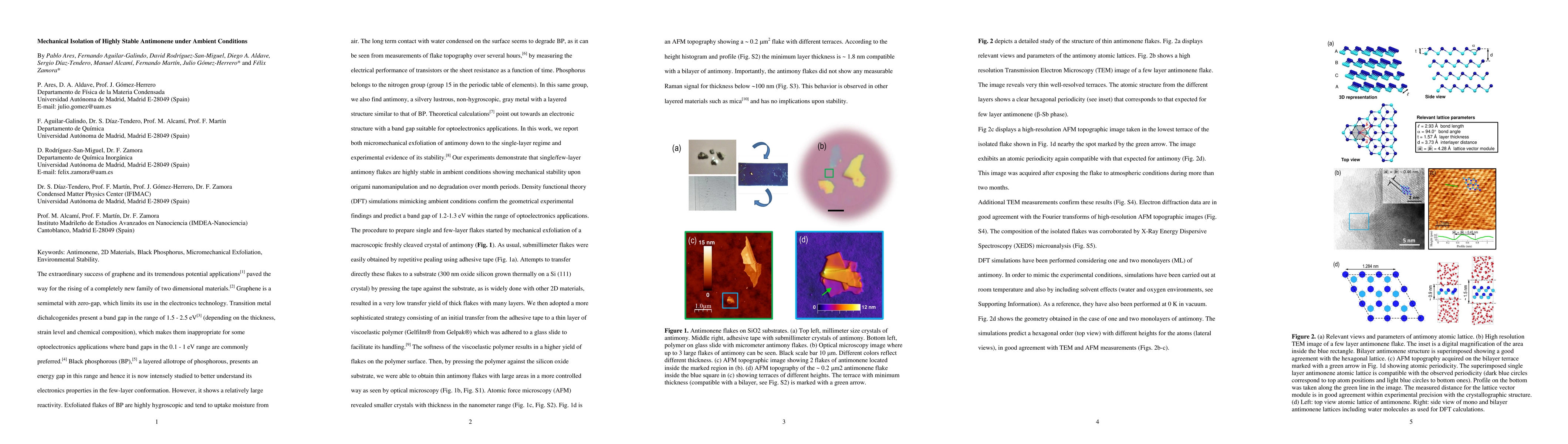 This study successfully isolates highly stable single-layer antimonene using mechanical exfoliation and a double transfer method, showing minimal contamination and water resistance under ambient conditions. DFT calculations predict a band gap of 1.2-1.3 eV, supporting antimonene's potential for optoelectronic applications.