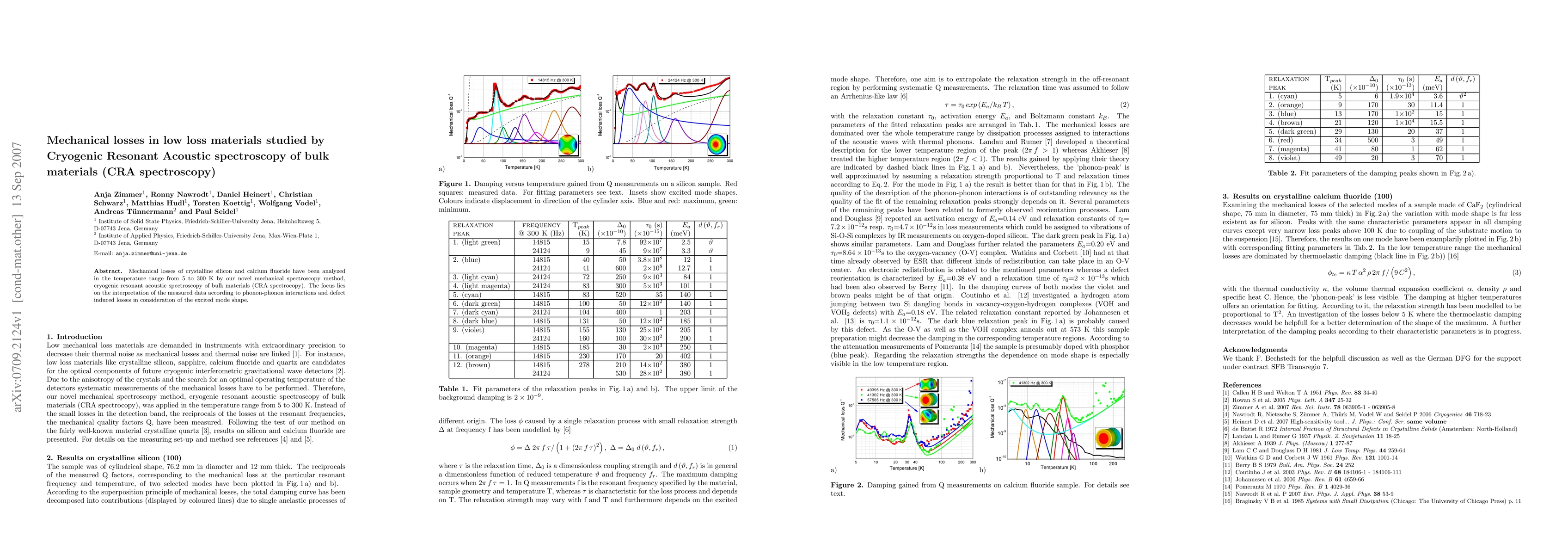 Mechanical losses of crystalline silicon and calcium fluoride have been analyzed in the temperature range from 5 to 300 K by our novel mechanical spectroscopy method, cryogenic resonant acoustic spectroscopy of bulk materials (CRA spectrocopy). The focus lies on the interpretation of the measured data according to phonon-phonon interactions and defect induced losses in consideration of the excited mode shape.