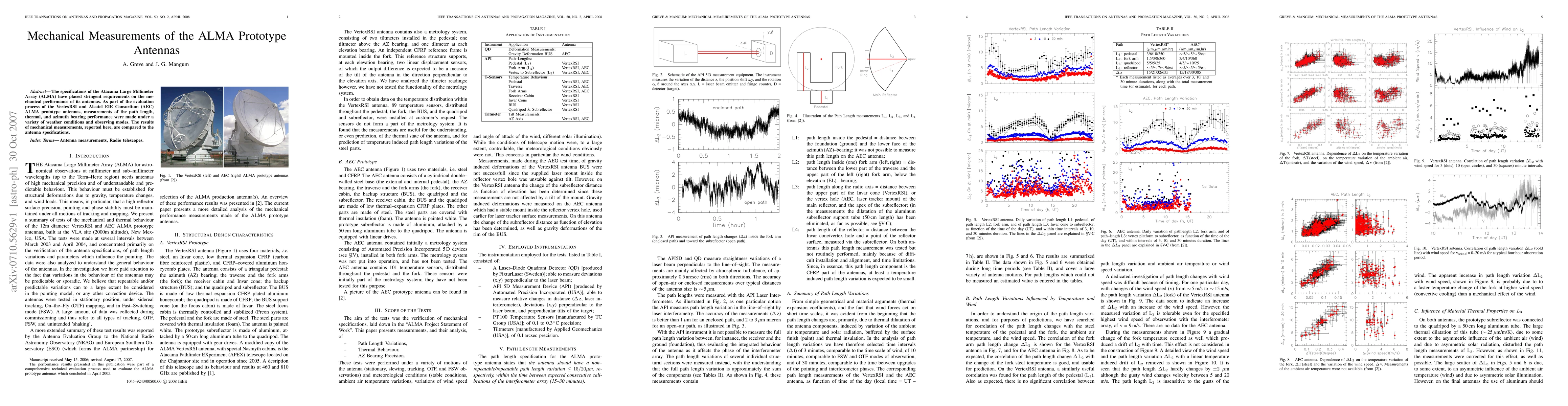 The specifications of the Atacama Large Millimeter Array (ALMA) have placed stringent requirements on the mechanical performance of its antennas. As part of the evaluation process of the VertexRSI and Alcatel EIE Consortium (AEC) ALMA prototype antennas, measurements of the path length, thermal, and azimuth bearing performance were made under a variety of weather conditions and observing modes. The results of mechanical measurements, reported here, are compared to the antenna specifications.