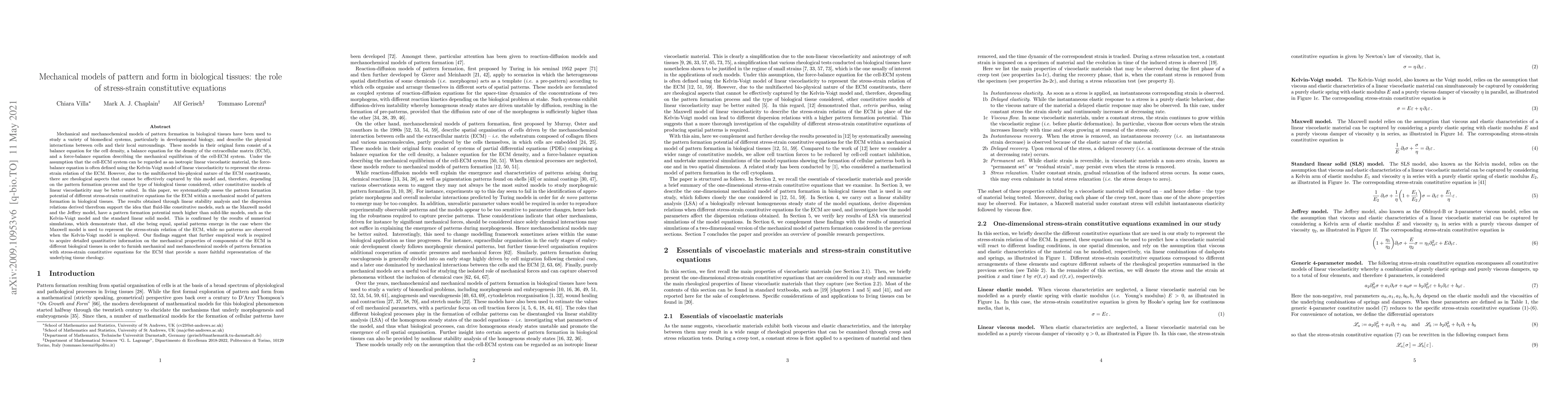 This paper evaluates various stress-strain constitutive models for the extracellular matrix (ECM) in biological tissues to understand their role in pattern formation. It finds that models capturing viscous flow and permanent set (Maxwell and Jeffrey models) are more effective than others (Kelvin-Voigt and standard linear solid models) in predicting pattern formation, suggesting a need for detailed empirical studies on ECM mechanical properties.