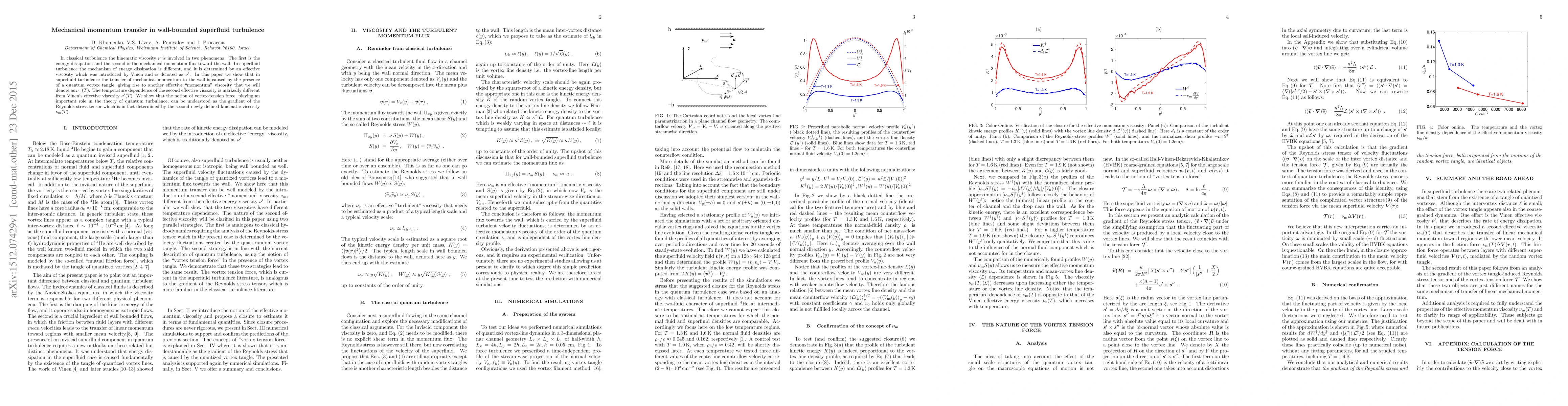 In classical turbulence the kinematic viscosity $\nu$ is involved in two phenomena. The first is the energy dissipation and the second is the mechanical momentum flux toward the wall. In superfluid turbulence the mechanism of energy dissipation is different, and it is determined by an effective viscosity which was introduced by Vinen and is denoted as $\nu'$. In this paper we show that in superfluid turbulence the transfer of mechanical momentum to the wall is caused by the presence of a quantum vortex tangle, giving rise to another effective "momentum" viscosity that we will denote as $\nu_\text{m}(T)$. The temperature dependence of the second effective viscosity is markedly different from Vinen's effective viscosity $\nu'(T)$. We show that the notion of vortex-tension force, playing an important role in the theory of quantum turbulence, can be understood as the gradient of the Reynolds stress tensor which is in fact determined by the second newly defined kinematic viscosity $\nu_\text{m}(T)$.