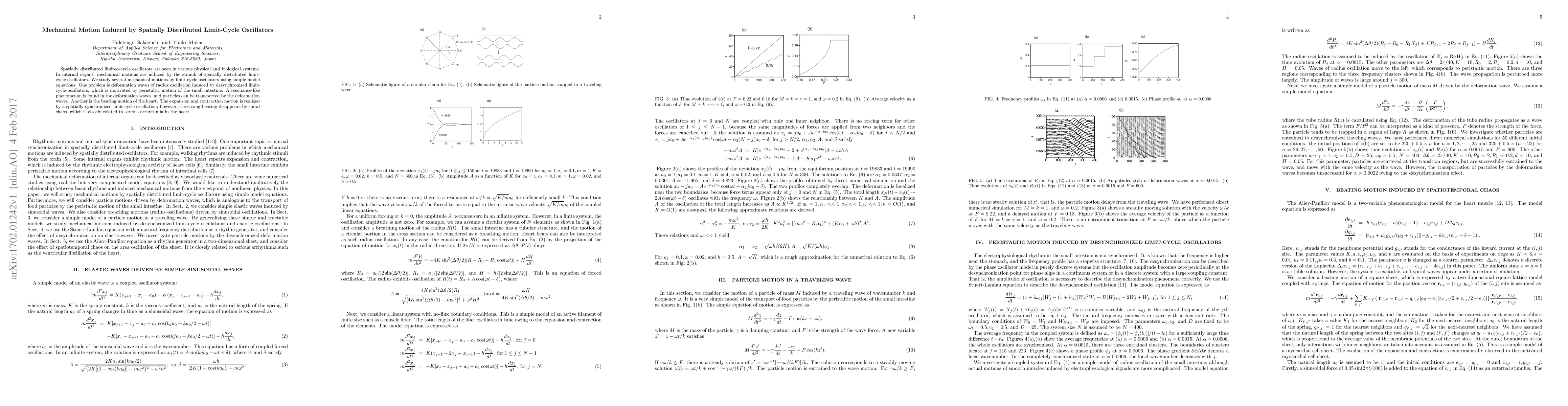 Spatially distributed limited-cycle oscillators are seen in various physical and biological systems. In internal organs, mechanical motions are induced by the stimuli of spatially distributed limit-cycle oscillators. We study several mechanical motions by limit-cycle oscillators using simple model equations. One problem is deformation waves of radius oscillation induced by desynchronized limit-cycle oscillators, which is motivated by peristaltic motion of the small intestine. A resonance-like phenomenon is found in the deformation waves, and particles can be transported by the deformation waves. Another is the beating motion of the heart. The expansion and contraction motion is realized by a spatially synchronized limit-cycle oscillation; however, the strong beating disappears by spiral chaos, which is closely related to serious arrhythmia in the heart.