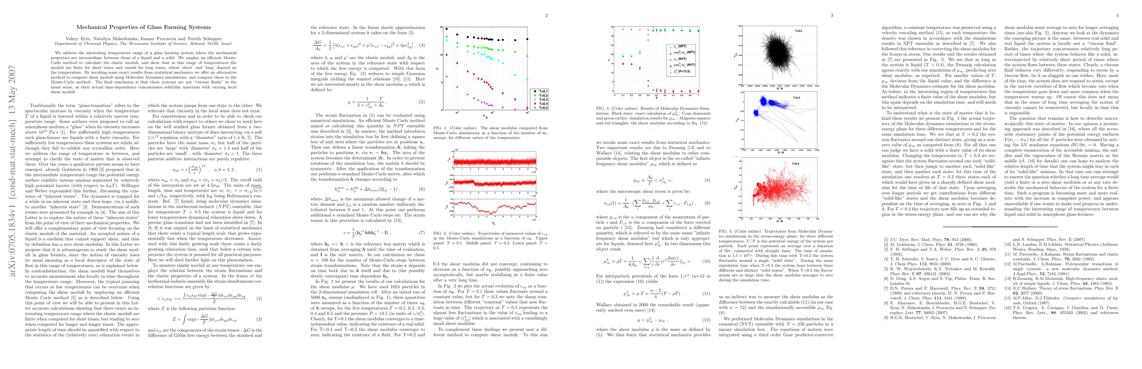 This paper investigates the mechanical properties of glass forming systems at intermediate temperatures, demonstrating that their elastic moduli transition from finite to vanishing values over time, depending on temperature. The study employs Monte-Carlo and Molecular Dynamics simulations to reveal that these systems exhibit a complex time-dependent behavior, combining solid-like and fluid-like characteristics.