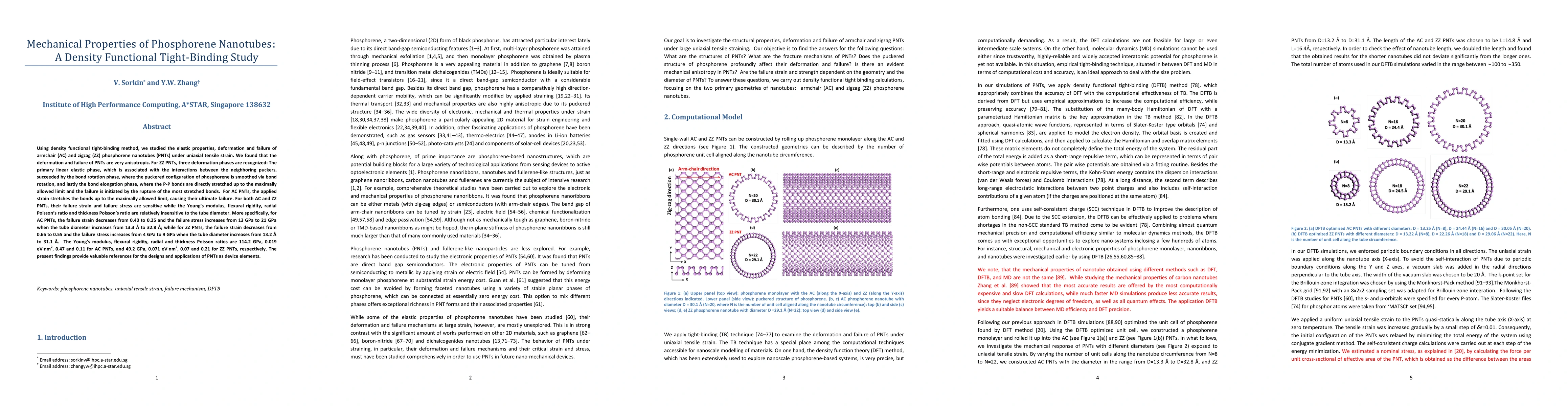 This study employs density functional tight-binding to investigate the mechanical properties of phosphorene nanotubes, revealing significant anisotropy in deformation and failure. Zigzag phosphorene nanotubes undergo three distinct deformation phases: linear elasticity, bond rotation, and bond elongation, leading to failure by rupture of the most stretched bonds.