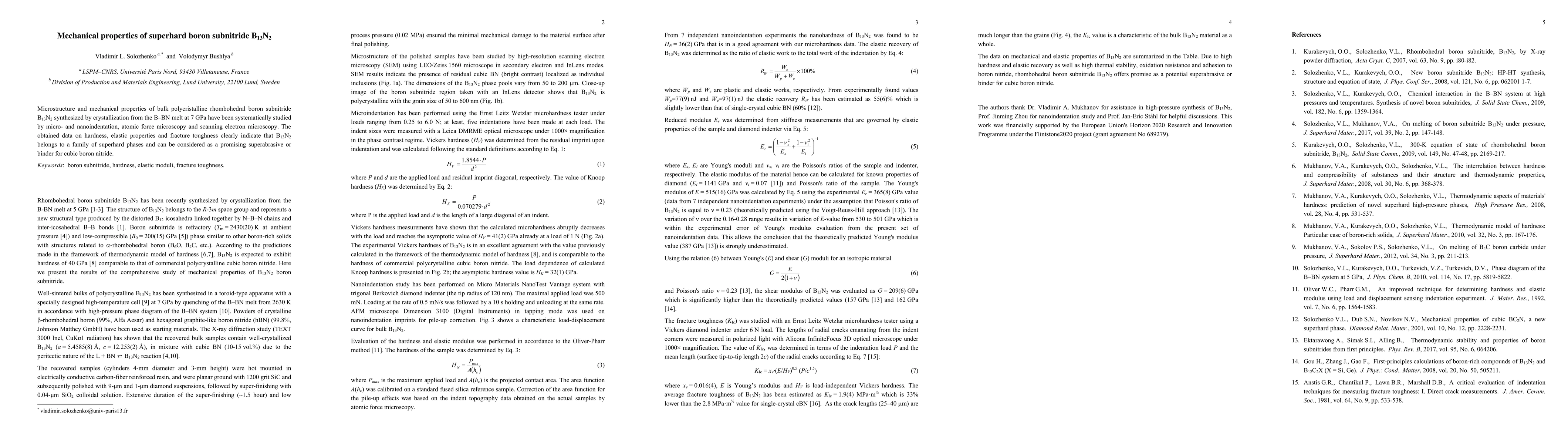 Research on superhard boron subnitride B13N2 reveals its exceptional hardness and elastic properties, making it a promising material for superabrasive or binder applications.
