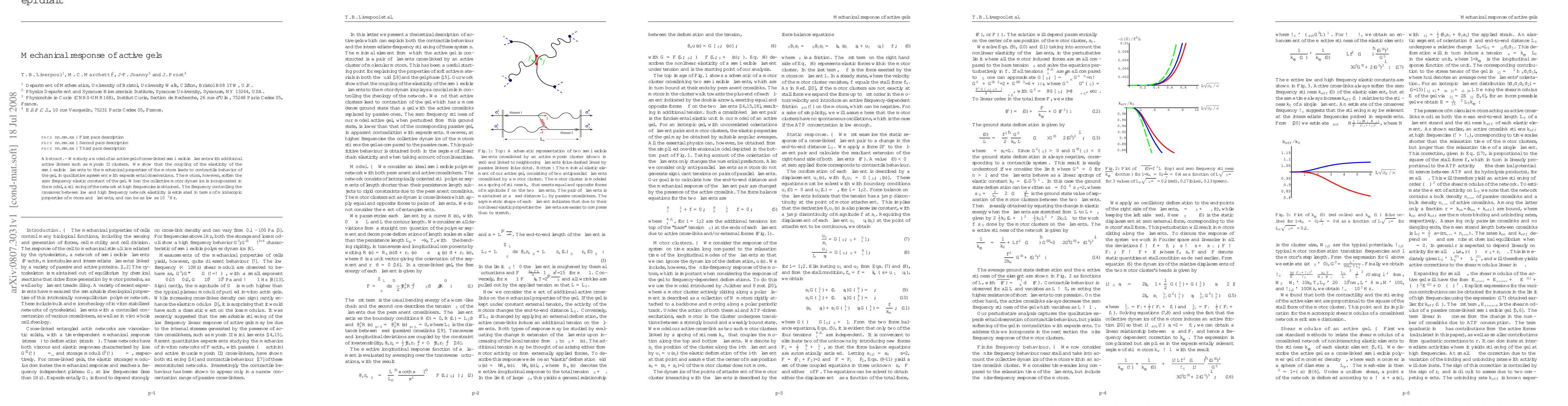 We study a model of an active gel of cross-linked semiflexible filaments with additional active linkers such as myosin II clusters. We show that the coupling of the elasticity of the semiflexible filaments to the mechanical properties of the motors leads to contractile behavior of the gel, in qualitative agreement with experimental observations. The motors, however, soften the zero frequency elastic constant of the gel. When the collective motor dynamics is incorporated in the model, a stiffening of the network at high frequencies is obtained. The frequency controlling the crossover between low and high frequency network elasticity is estimated in terms of microscopic properties of motors and filaments, and can be as low as 10^(-3)Hz.