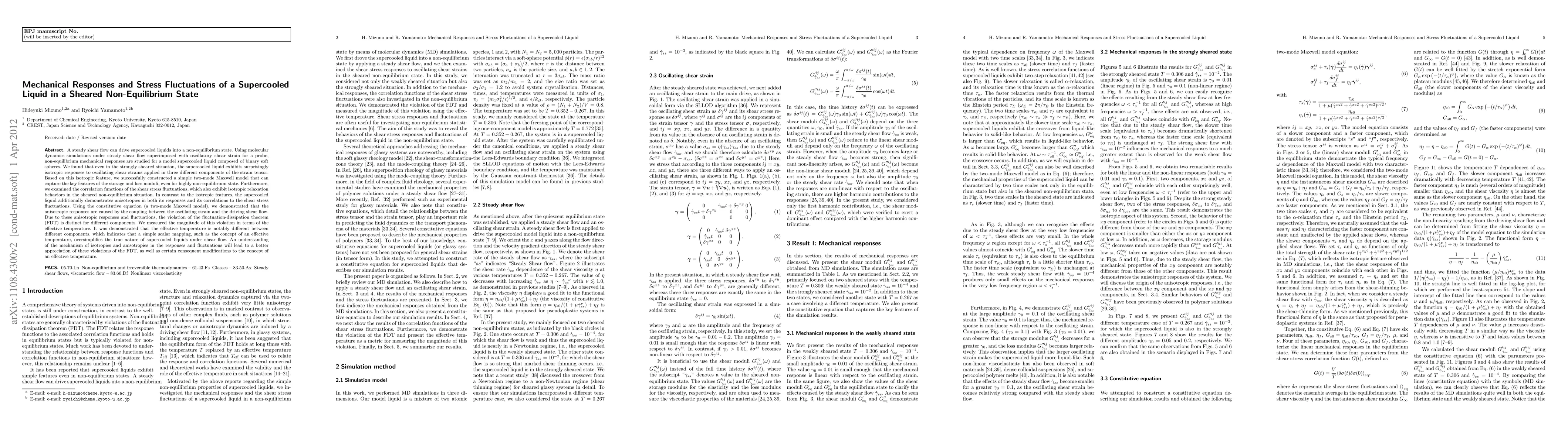 This study investigates the mechanical responses and stress fluctuations of supercooled liquids under steady shear flow using molecular dynamics simulations. The research reveals isotropic responses to oscillatory shear strains and constructs a two-mode Maxwell model to capture these behaviors, while also identifying anisotropies in responses and stress fluctuations due to the coupling between shear flow and oscillatory strain, challenging the concept of an effective temperature.