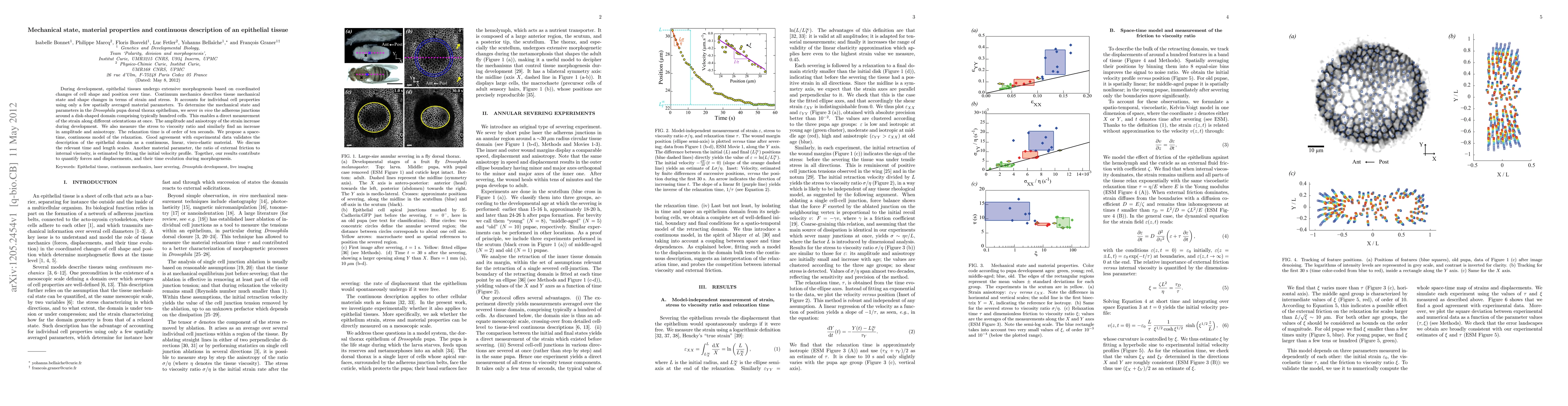 This paper investigates the mechanical state and material properties of the Drosophila pupa dorsal thorax epithelium during development, proposing a continuous, linear, visco-elastic model that accurately describes the tissue's mechanical behavior. The study finds increasing strain and stress anisotropy over time and estimates relevant time and length scales for morphogenesis.