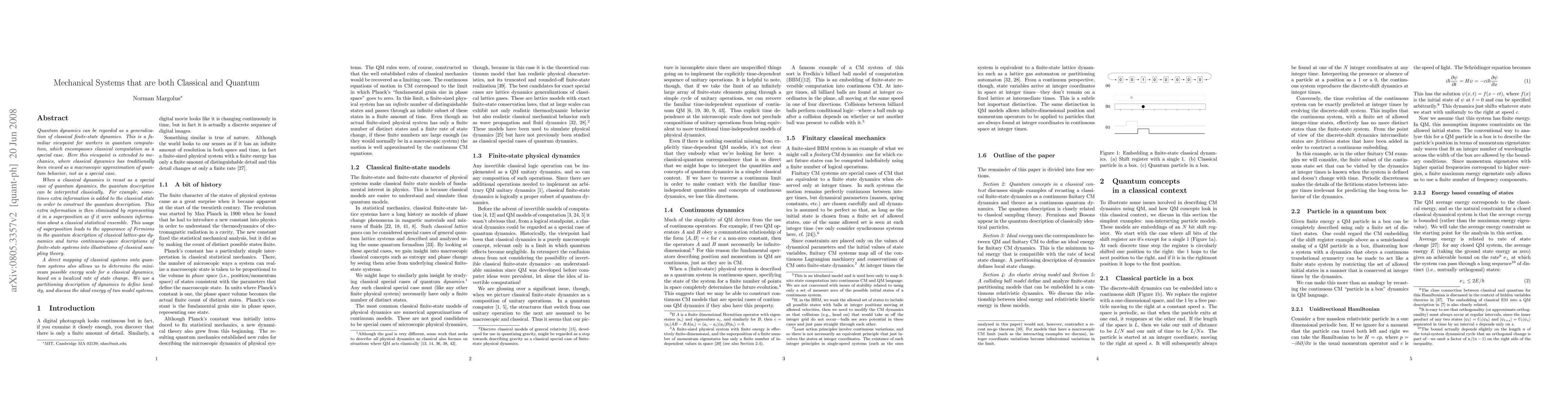 Quantum dynamics can be regarded as a generalization of classical finite-state dynamics. This is a familiar viewpoint for workers in quantum computation, which encompasses classical computation as a special case. Here this viewpoint is extended to mechanics, where classical dynamics has traditionally been viewed as a macroscopic approximation of quantum behavior, not as a special case. When a classical dynamics is recast as a special case of quantum dynamics, the quantum description can be interpreted classically. For example, sometimes extra information is added to the classical state in order to construct the quantum description. This extra information is then eliminated by representing it in a superposition as if it were unknown information about a classical statistical ensemble. This usage of superposition leads to the appearance of Fermions in the quantum description of classical lattice-gas dynamics and turns continuous-space descriptions of finite-state systems into illustrations of classical sampling theory. A direct mapping of classical systems onto quantum systems also allows us to determine the minimum possible energy scale for a classical dynamics, based on a localized rate of state change. We use a partitioning description of dynamics to define locality, and discuss the ideal energy of two model systems.