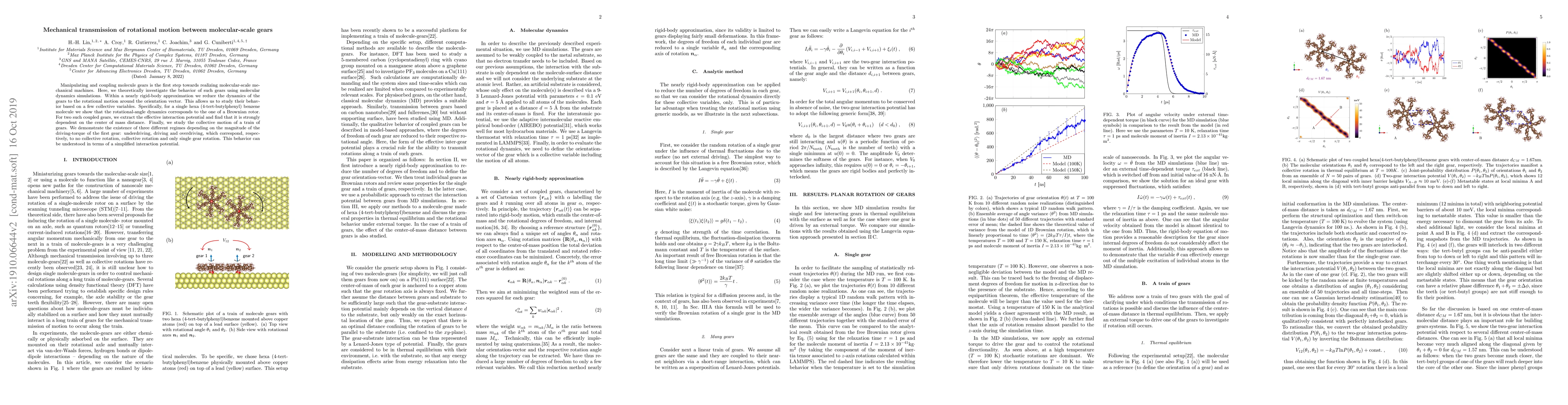 The study uses molecular dynamics simulations and a simplified interaction potential to theoretically investigate the behavior of molecular-scale gears, reducing their dynamics to rotational motion around the orientation vector.