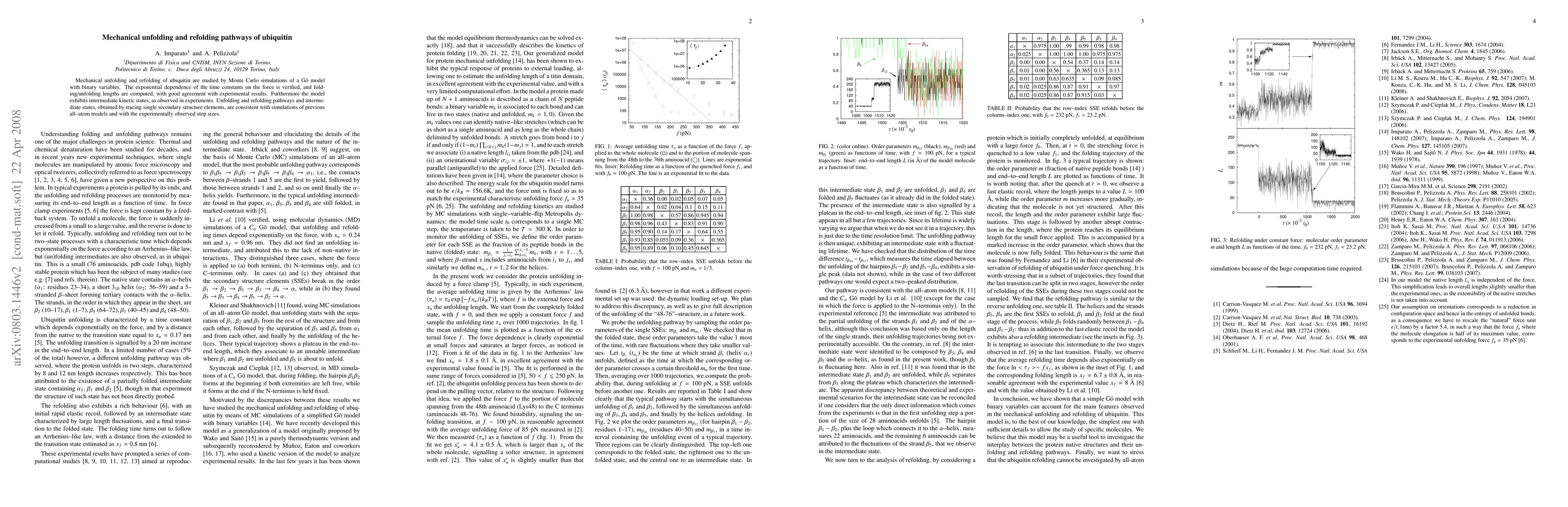 This paper uses Monte Carlo simulations to study the mechanical unfolding and refolding pathways of ubiquitin, confirming the exponential force dependence and identifying intermediate kinetic states. The results align well with experimental observations and previous all-atom models.