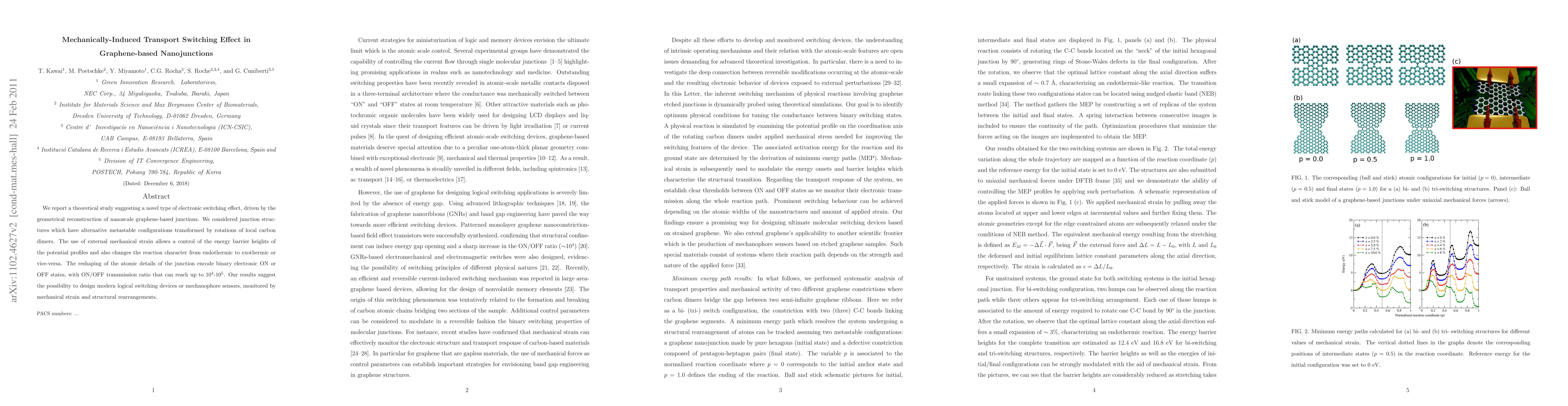 Researchers discovered a novel electronic switching effect in graphene-based nanojunctions, achieved through mechanical strain and structural rearrangements, enabling high ON/OFF transmission ratios.