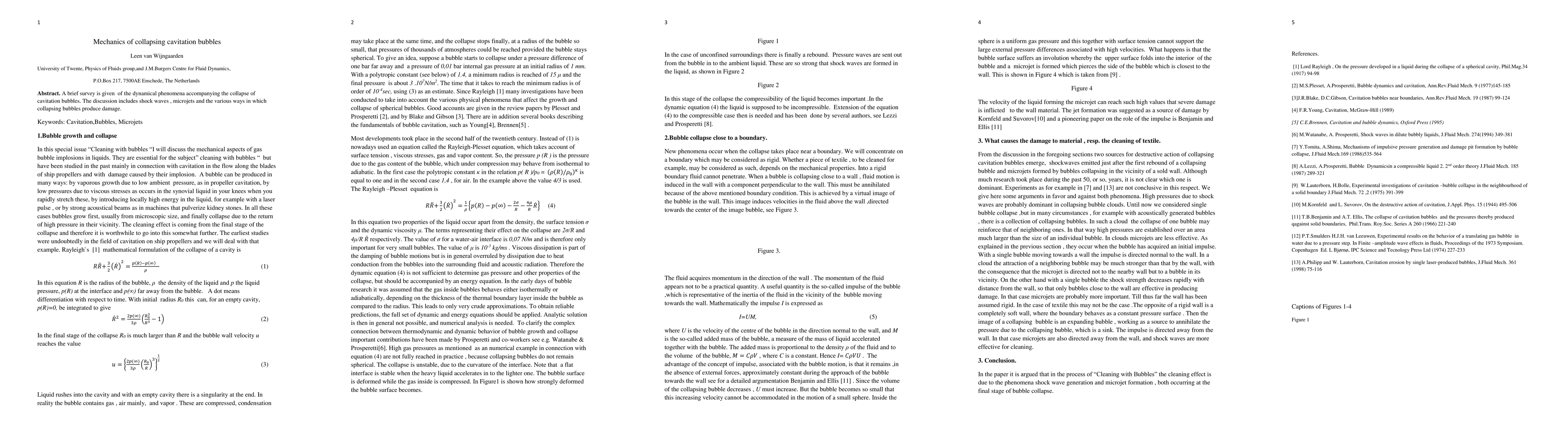 A brief survey is given of the dynamical phenomena accompanying the collapse of cavitation bubbles. The discussion includes shock waves, microjets and the various ways in which collapsing bubbles produce damage.