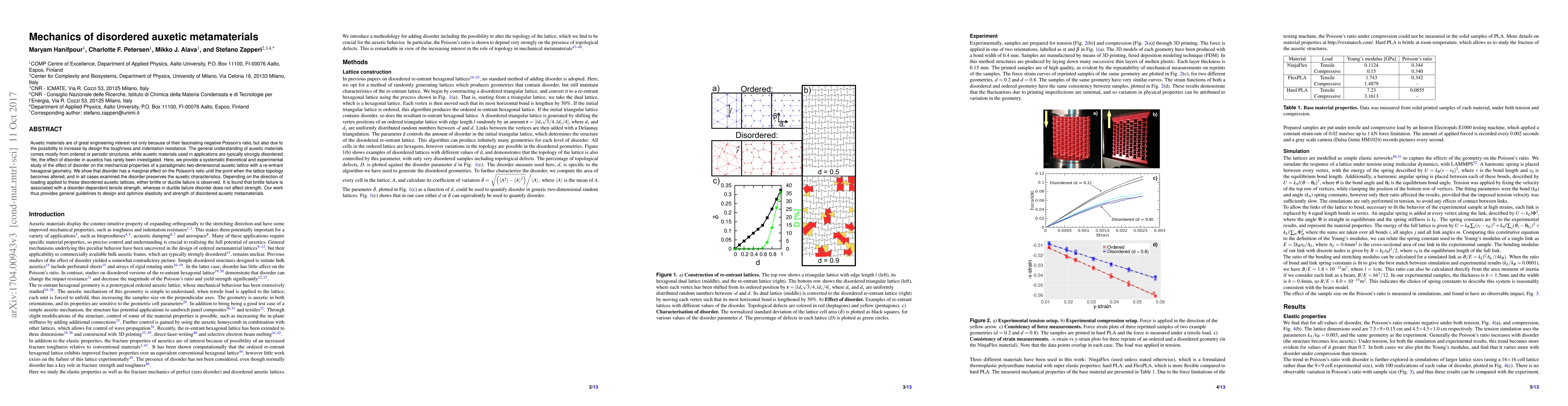 This study systematically investigates the impact of disorder on the mechanical properties of auxetic metamaterials, revealing that while disorder minimally affects the negative Poisson's ratio, it influences failure modes—leading to either brittle or ductile failure depending on loading direction. The findings offer guidelines for optimizing the elasticity and strength of such materials.