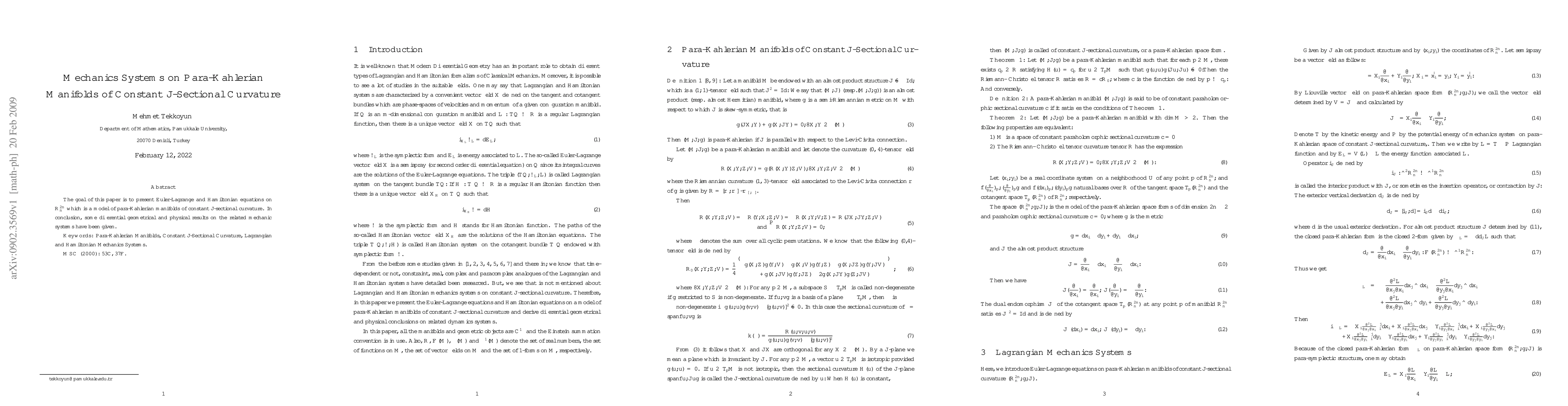 The goal of this paper is to present Euler-Lagrange and Hamiltonian equations on R2n which is a model of para-Kaehlerian manifolds of constant J-sectional curvature. In conclusion, some differential geometrical and physical results on the related mechanic systems have been given.