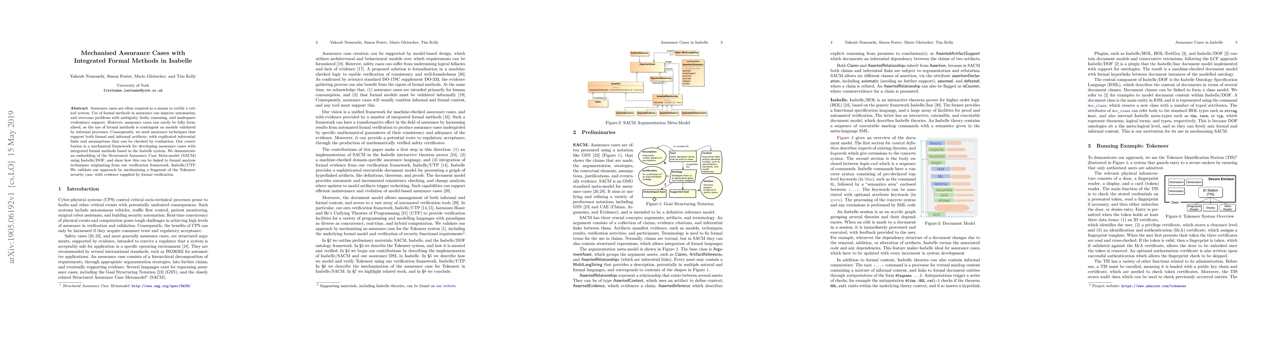 Assurance cases are often required as a means to certify a critical system. Use of formal methods in assurance can improve automation, and overcome problems with ambiguity, faulty reasoning, and inadequate evidentiary support. However, assurance cases can rarely be fully formalised, as the use of formal methods is contingent on models validated by informal processes. Consequently, we need assurance techniques that support both formal and informal artifacts, with explicated inferential links and assumptions that can be checked by evaluation. Our contribution is a mechanical framework for developing assurance cases with integrated formal methods based in the Isabelle system. We demonstrate an embedding of the Structured Assurance Case Meta-model (SACM) using Isabelle/DOF, and show how this can be linked to formal analysis techniques originating from our verification framework, Isabelle/UTP. We validate our approach by mechanising a fragment of the Tokeneer security case, with evidence supplied by formal verification.