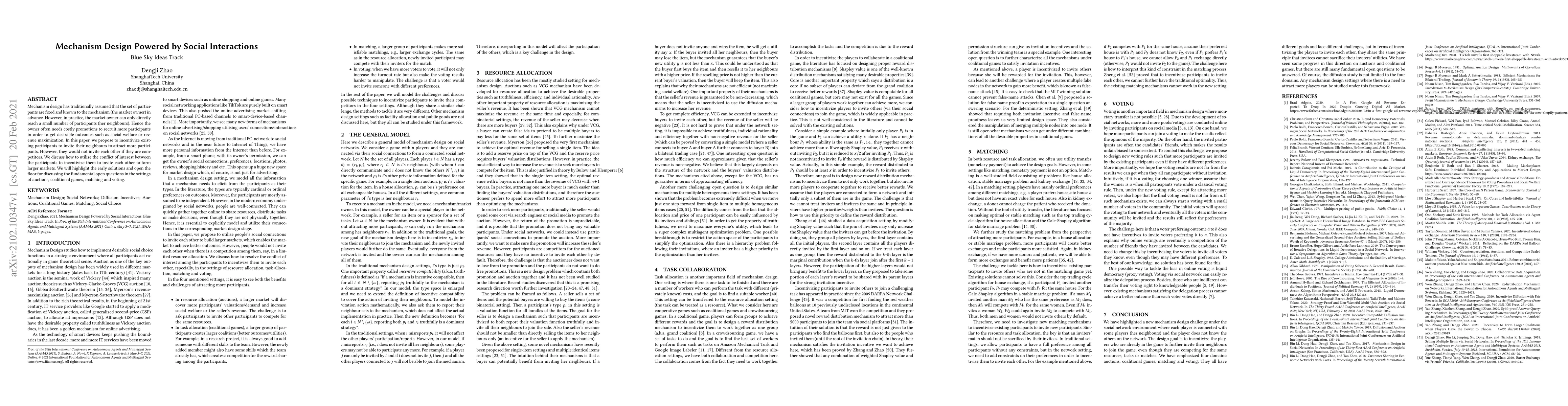 Yao Zhang, Haoxin Liu, Dengji Zhao