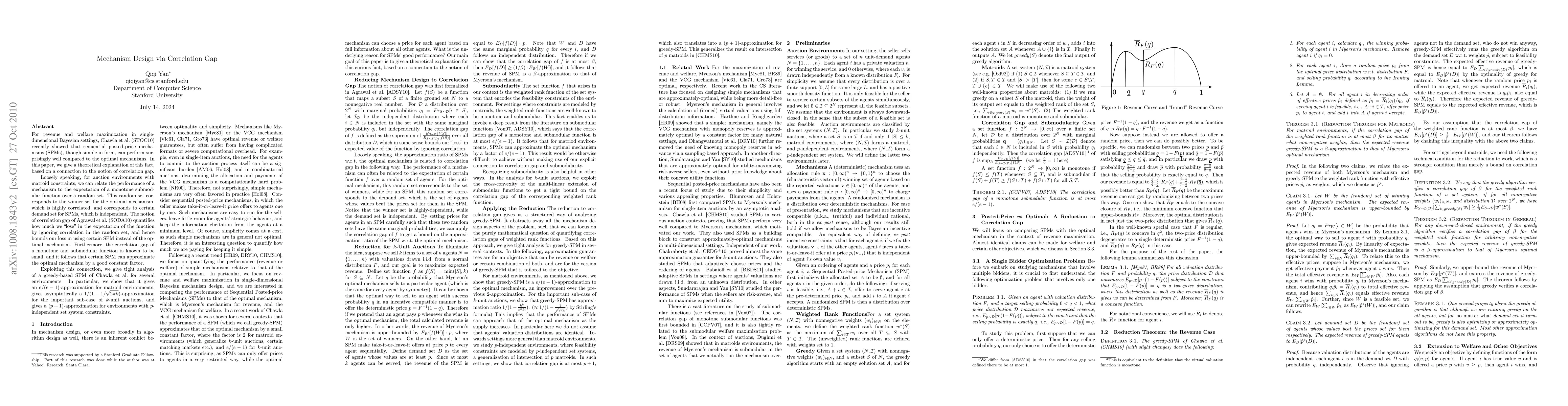 For revenue and welfare maximization in single-dimensional Bayesian settings, Chawla et al. (STOC10) recently showed that sequential posted-price mechanisms (SPMs), though simple in form, can perform surprisingly well compared to the optimal mechanisms. In this paper, we give a theoretical explanation of this fact, based on a connection to the notion of correlation gap. Loosely speaking, for auction environments with matroid constraints, we can relate the performance of a mechanism to the expectation of a monotone submodular function over a random set. This random set corresponds to the winner set for the optimal mechanism, which is highly correlated, and corresponds to certain demand set for SPMs, which is independent. The notion of correlation gap of Agrawal et al.\ (SODA10) quantifies how much we {}"lose" in the expectation of the function by ignoring correlation in the random set, and hence bounds our loss in using certain SPM instead of the optimal mechanism. Furthermore, the correlation gap of a monotone and submodular function is known to be small, and it follows that certain SPM can approximate the optimal mechanism by a good constant factor. Exploiting this connection, we give tight analysis of a greedy-based SPM of Chawla et al.\ for several environments. In particular, we show that it gives an $e/(e-1)$-approximation for matroid environments, gives asymptotically a $1/(1-1/\sqrt{2\pi k})$-approximation for the important sub-case of $k$-unit auctions, and gives a $(p+1)$-approximation for environments with $p$-independent set system constraints.