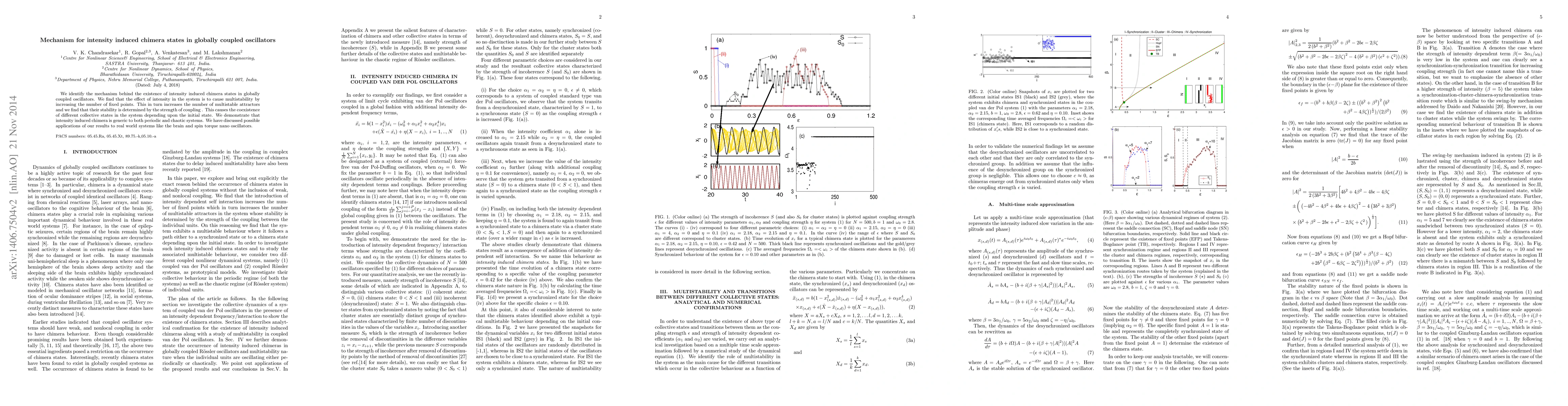 Summary: The paper identifies the mechanism for intensity-induced chimera states in globally coupled oscillators, revealing that intensity increases multistability and the number of attractors, leading to coexistence of different collective states based on initial conditions, with implications for brain dynamics and nano oscillators.
