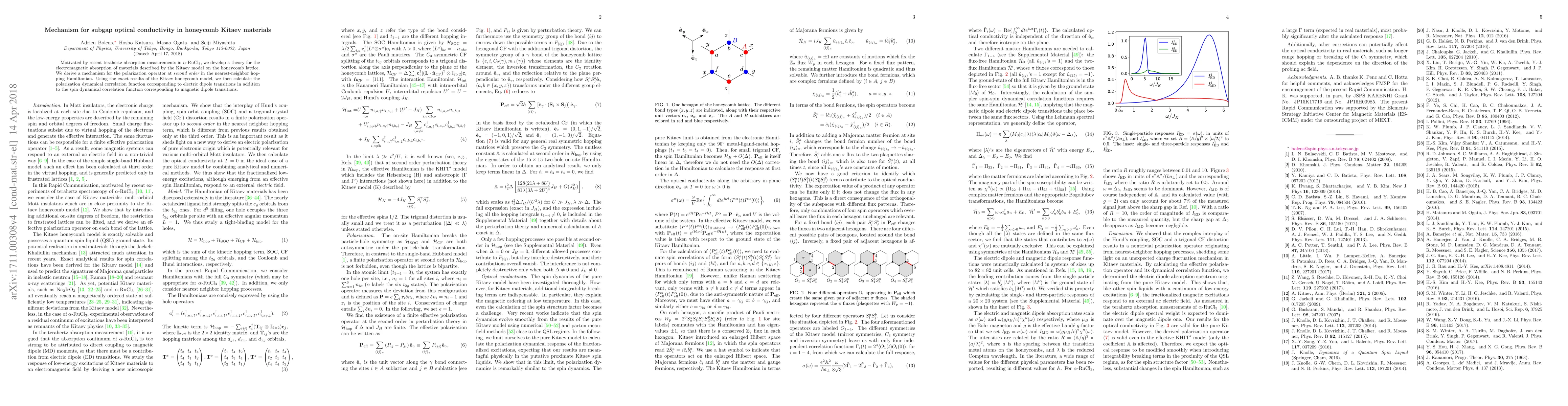Researchers developed a theory for the electromagnetic absorption of honeycomb lattice materials described by the Kitaev model, explaining subgap optical conductivity in $eta$-RuCl$_3$. They calculated polarization and spin dynamical correlation functions to understand electric dipole transitions.