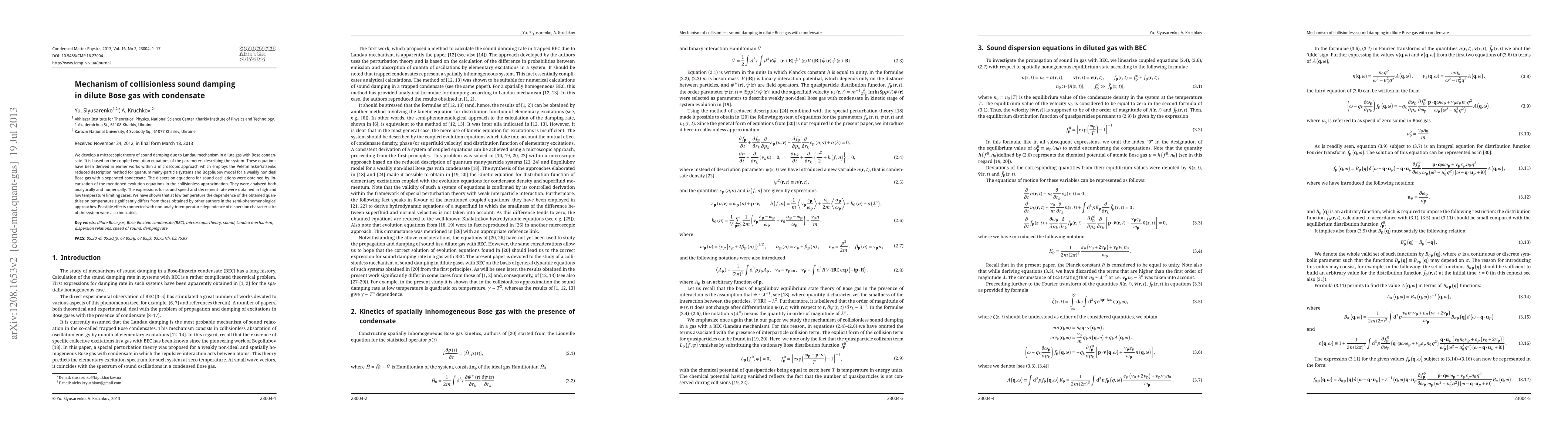 The research develops a microscopic theory of sound damping due to the Landau mechanism in a dilute Bose gas with a condensate, using the Peletminskii-Yatsenko reduced description method and the Bogoliubov model for a weakly nonideal Bose gas with a separated condensate.