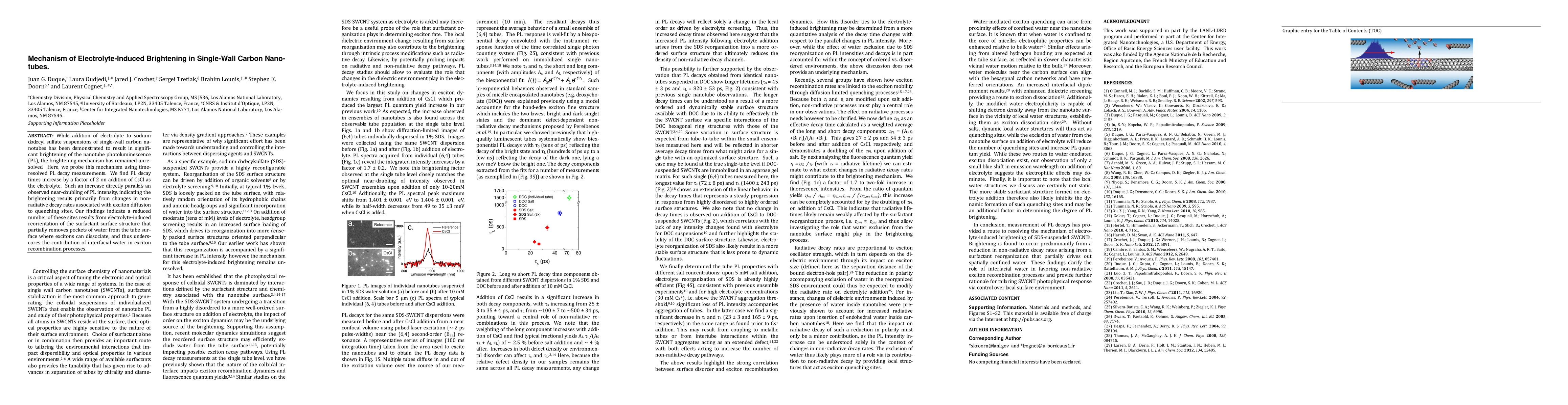 This paper investigates the mechanism behind electrolyte-induced brightening in single-wall carbon nanotubes, finding that the addition of CsCl increases photoluminescence intensity and decay times, suggesting a reduction in nonradiative decay rates due to electrolyte-induced surfactant reorientation and removal of water-pockets from the tube surface.