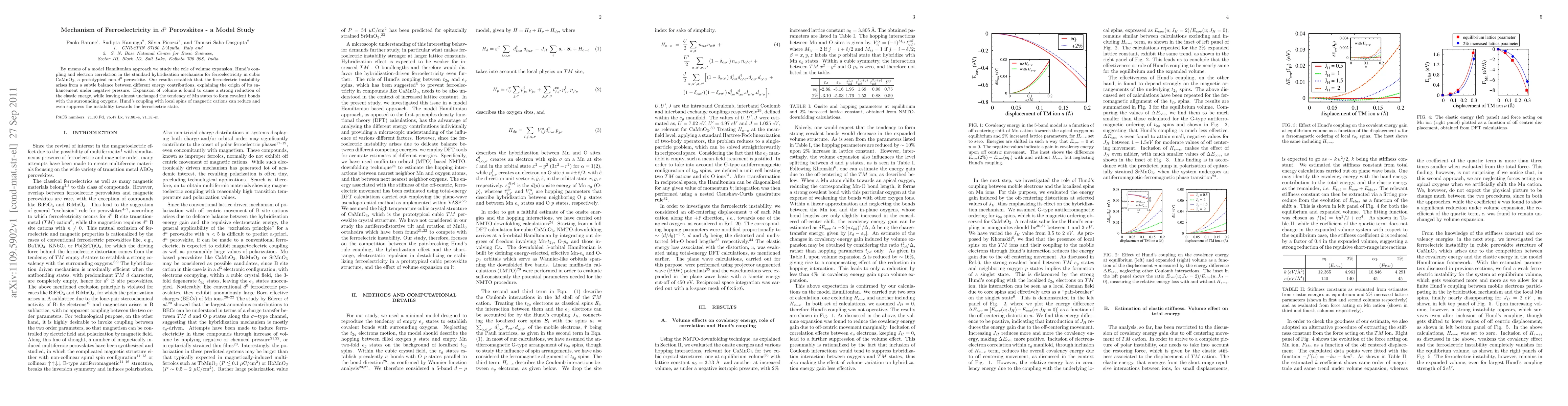 By means of a model Hamiltonian approach we study the role of volume expansion, Hund's coupling and electron correlation in the standard hybridization mechanism for ferroelectricity in cubic CaMnO$_3$, a prototypical non-$d^0$ perovskite. Our results establish that the ferroelectric instability arises from a subtle balance between different energy contributions, explaining the origin of its enhancement under negative pressure. Expansion of volume is found to cause a strong reduction of the elastic energy, while leaving almost unchanged the tendency of Mn states to form covalent bonds with the surrounding oxygens. Hund's coupling with local spins of magnetic cations can reduce and even suppress the instability towards the ferroelectric state.