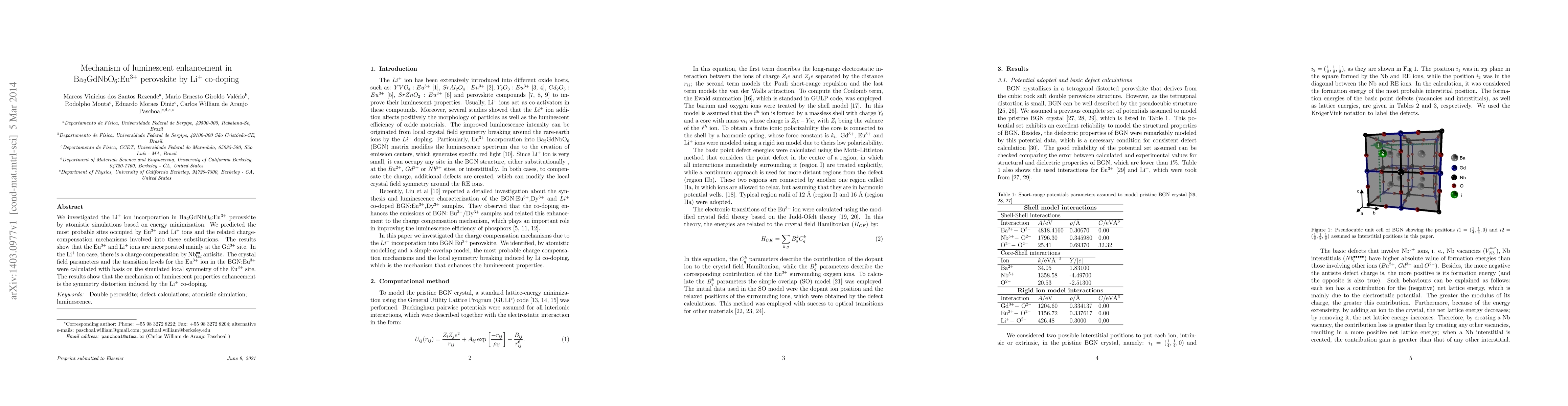 Researchers used computer simulations to investigate how Li+ ions enhance luminescence in a specific perovskite material by altering its crystal structure, leading to increased symmetry distortion and improved light emission properties.