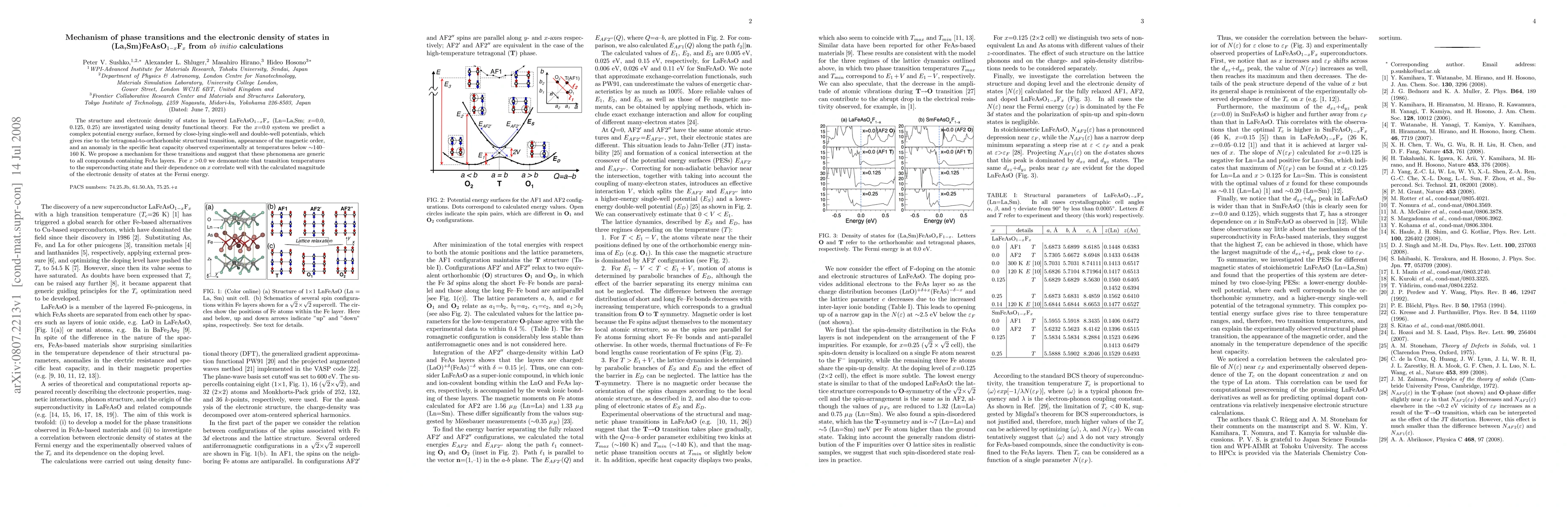 The structure and electronic density of states in layered LnFeAsO$_{1-x}$F$_x$ (Ln=La,Sm; $x$=0.0, 0.125, 0.25) are investigated using density functional theory. For the $x$=0.0 system we predict a complex potential energy surface, formed by close-lying single-well and double-well potentials, which gives rise to the tetragonal-to-orthorhombic structural transition, appearance of the magnetic order, and an anomaly in the specific heat capacity observed experimentally at temperatures below $\sim$140--160 K. We propose a mechanism for these transitions and suggest that these phenomena are generic to all compounds containing FeAs layers. For $x>$0.0 we demonstrate that transition temperatures to the superconducting state and their dependence on $x$ correlate well with the calculated magnitude of the electronic density of states at the Fermi energy.