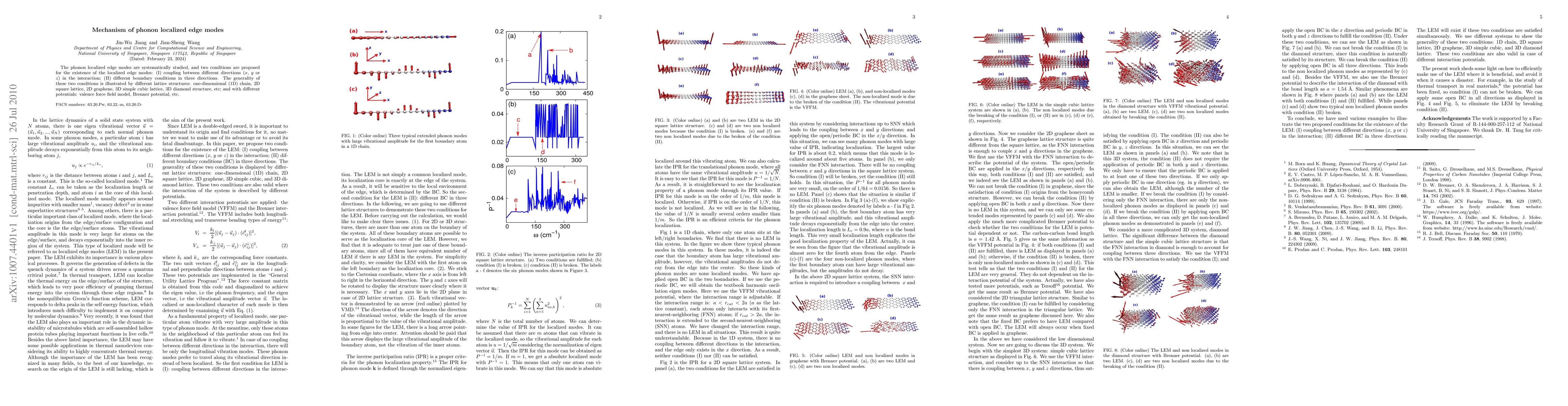 This paper investigates the conditions for phonon localized edge modes, proposing that coupling between different directions and varying boundary conditions are necessary. The findings are demonstrated across various lattice structures and potential models.