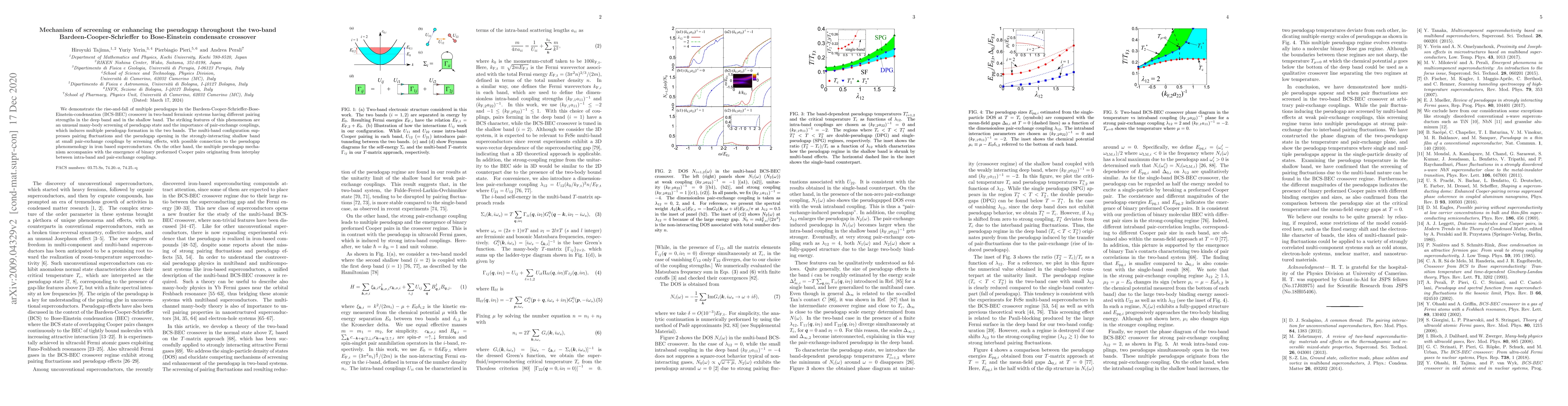 This paper investigates the emergence and suppression of pseudogaps in two-band fermionic systems across the BCS-BEC crossover, highlighting the role of pair-exchange couplings and screening effects. It reveals that multi-band configurations can suppress pseudogaps in strongly-interacting shallow bands, while also fostering the formation of binary preformed Cooper pairs.