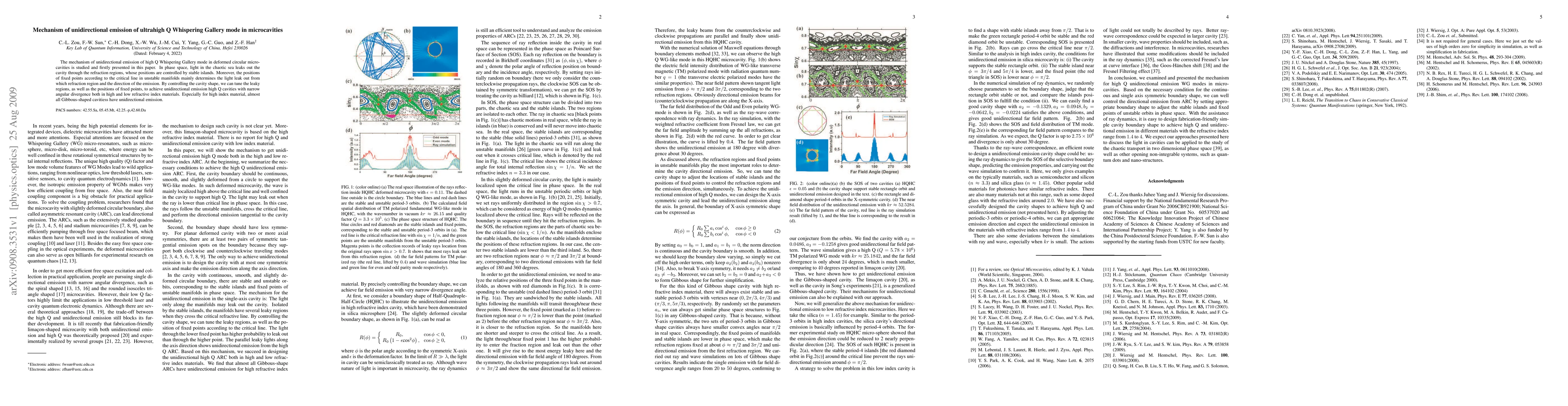 The mechanism of unidirectional emission of high Q Whispering Gallery mode in deformed circular micro- cavities is studied and firstly presented in this paper. In phase space, light in the chaotic sea leaks out the cavity through the refraction regions, whose positions are controlled by stable islands. Moreover, the positions of fixed points according to the critical line in unstable manifolds mainly determines the light leak out from which refraction region and the direction of the emission. By controlling the cavity shape, we can tune the leaky regions, as well as the positions of fixed points, to achieve unidirectional emission high Q cavities with narrow angular divergence both in high and low refractive index mater